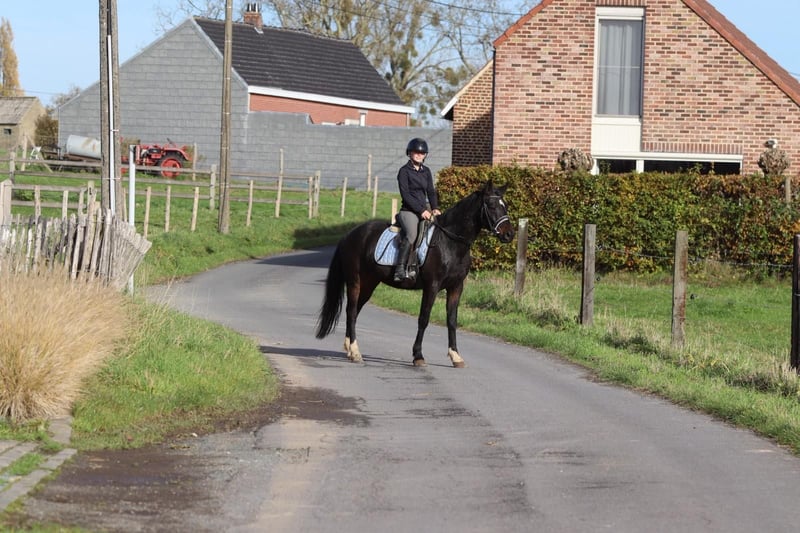 🐴 E-Pony-Ruin – Dean (5 Jahre, 1,54 m) Dean ist ein äußerst brave und leicht zu reitende 5-jährige Hengst mit einer Größe von 1,54 m. Er verfügt über einen ruhigen, angenehmen Trab und Galopp und ist sowohl in der Halle als auch im Gelände angenehm zu reiten. Er ist nicht schreckhaft und zeigt sich stets zuverlässig im Umgang. 💫 Verträgt sich gut mit anderen Pferden 💫 Überwindet Sprünge mühelos 💫 Brav im Umgang, auch beim Stall und beim Putzen 💫 Datenbank vollständig in Ordnung Kurz gesagt, ein angenehmer Pony, das seinem Reiter Freude bereitet und bereit ist, sich in Sport oder Freizeit weiterzuentwickeln. 📞 Weitere Infos: +32 475 68 22 43 🎥 Videos finden Sie auf unserer Webseite – gerne schicken wir den Link!