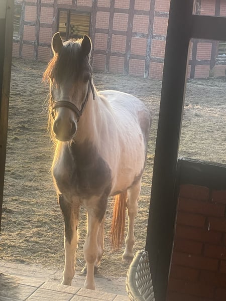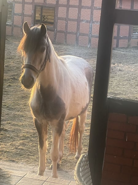 Verkaufe liebenswerten Wallach – ideales Pony für die Freizeit oder bei entsprechender Förderung auch sicher für den Sport geeignet. Monty ist Monty. Punkt. Ein ganz besonderes Pony für besondere Menschen. Er läuft seinen Menschen wie ein Hund hinterher, will immer dabei sein und klebt nicht an anderen Pferden. Dieser charmante Porzellanschecke-Wallach wurde im Jahr 2020 geboren und überzeugt durch sein freundliches, sehr menschenbezogenes Wesen und seine vielseitigen Einsatzmöglichkeiten. Mit einem Stockmaß von 142 cm ist er perfekt für Kinder und Jugendliche geeignet, die ihre ersten Schritte im Pferdesport machen möchten. Der kleine Freizeitpartner ist gesund, zuverlässig und zeigt sich im Umgang stets unkompliziert. Ob geführte Ausritte, Spaziergänge oder Bodenarbeit – dieses Pony macht überall eine gute Figur und freut sich auf eine neue Familie, die ihn liebevoll fördert und fordert. Monty ist ein kleiner Clown, ist an allem und jedem interessiert und möchte Aufmerksamkeit und Beschäftigung. Da ich keinen Reiter für ihn habe und selbst leider zu groß für ihn bin, möchte ich schweren Herzens ein neues Zuhause für ihn suchen. Eigentlich war er für meine Enkeltöchter (2-4Jahre alt) gedacht, aber dafür ist er etwas zu groß. Ein Kind / Jugendlicher zwischen 6 und 16 Jahren wäre ideal für ihn. Daher würde ich eventuell auch gegen eine Ponystute bis maximal 135 cm tauschen. Der Preis bezieht sich auf Monty inklusive Zubehör! Sattel: Prestige Inspire 16“ NEUWERTIG (NP 2100€) Gurt: Devoucoux Kurzgurt NEUWERTIG ( NP: 370€) Prestige Steigbügelriemen und neue Sicherheitssteigbügel! Bei Interesse oder für weitere Informationen stehe ich gern zur Verfügung.