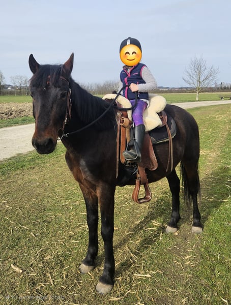 Wir müssen uns leider von unserem Teddy aus Privaten Gründen und fehlender Erfahrung wieder trennen. Wir haben ihn letztes Jahr im Dezember mit 5 Jahren gekauft und wollten ihn als Familienpferd nutzen. Er war eingeritten aber auch noch etwas grün hinter den Ohren. Er ist sehr personenbezogen und braucht eine feste Bezugsperson. Er lässt sich longieren und auch bei der Bodenarbeit ist er sehr lernwillig. Allein im Gelände ist er unsicher und etwas schreckhaft. Er wird deshalb nur in erfahrene Hände abgegeben der ihm ein richtiges Training bieten kann. Er lässt sich problemlos putzen und Satteln. Auch beim Hufschmied macht er alles super. Wir geben das komplette Zubehör mit dazu. Einen Teil Liste ich unten auf aber nicht jede Kleinigkeit da es sonst zu viel wird. Wir haben ihn auch Anfang des Jahres entwurmt und ist vollständig geimpft. Eine AKU haben wir auch machen lassen und kann gerne vor gelegt werden. Er ist kastriert und steht momentan in einer gemischten Herde im Offenstall. Wir wünschen ihm für die Zukunft ein Einzelstellplatz (Paddock) oder tagsüber Weide mit nächtlicher Box. So muss er sich nicht ständig beweisen. Er steht aktuell in 88094 Unterteuringen Fragen beantworte ich gerne per Whatsapp: +49176/61899960 Details: • Geschlecht: Wallach • Geburtsdatum: 2019 • Alter: 6 Jahre • Widerristhöhe: ca. 1,48m • Bareback - Pad Wildleder • Westernsattel mit Fell • Englischer Sattel • Lammfellgurt Neu • Kappzaum Neu • Kappzaum 1 J. alt • Trense • 2 Halfter • Steigbügel Kinder • Gerte • Longierpeitsche • Longierleine • Lucky - Rider Pad • Schrank
