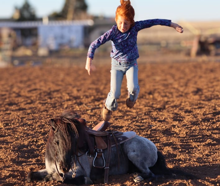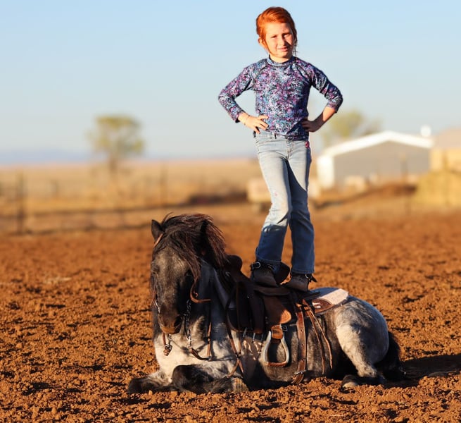 Blueberry is the pony my 6-year-old daughter, Zia, confidently catches on her own and rides around bareback. He is as honest and dependable as they come, with top-tier ground manners and absolutely no “freshness.”