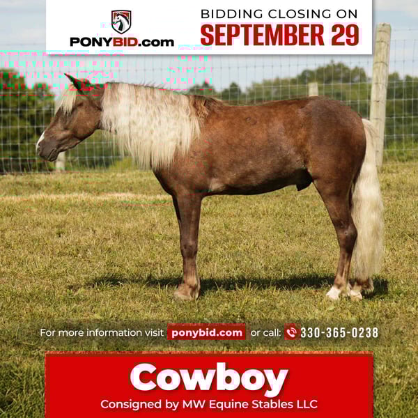 🐴 𝒕𝒉𝒆 𝐅𝐀𝐋𝐋 ℙ𝕆ℕ𝕐 𝑺𝒑𝒆𝒄𝒕𝒂𝒄𝒖𝒍𝒂𝒓🐴 Happening now thru MONDAY | SEPTEMBER 29th - Available EXCLUSIVELY on Ponybid's website! For more details and to register visit: www.Ponybid.com CONSIGNOR CONTACT: MW Equine Stables LLC 330-365-0238 LOCATION: Fresno, OH BREED: Pony REGISTERED: No COLOR: Silver Dapple HEIGHT: 42" AGE: 5 GENDER: Gelding ♦️ Cowboy The Liberty Pony ♦️ Cowboy is a 5 yr old Silver Dapple pony gelding that stands 42” tall.. He is that perfect step up pony for the kids… Cowboy has been with us for the past 2 yrs and we have enjoyed every minute with him. He is a very smart pony, we have done lots of liberty with him. If you are looking for your heart pony, 👉This Is The One👈 He is very handy, and the perfect size for a step up pony.. Cowboy is trained to ride and drive. And is absolutely kid safe.. he will walk trot and canter in the arena and will ride around like a big horse… Cowboy is traffic safe.. He has seen lots of trail miles. And is very easy to catch.. Cowboy is safe with tarp and ball and will go through all kinds of obstacles… We have also used him to gather cows and he absolutely loves it.. He is the ultimate Lil Cowboys Dream Pony.
