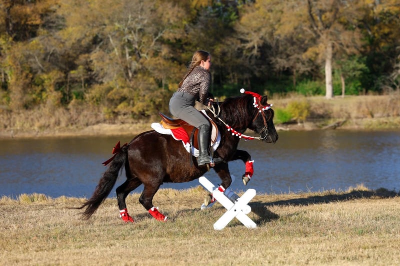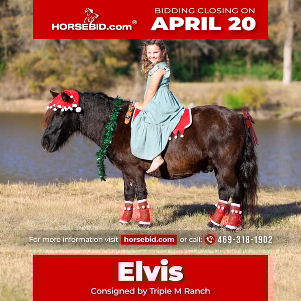 ⚜️𝐭𝐡𝐞 𝓔𝓵𝓲𝓽𝓮 𝐒𝐩𝐫𝐢𝐧𝐠 𝐂𝐥𝐚𝐬𝐬𝐢𝐜⚜️ Happening now thru MONDAY | APRIL 20th - Available EXCLUSIVELY on HorseBid's website! For more details and to register visit: www.Horsebid.com CONSIGNOR CONTACT: Triple M Ranch 469-318-1902 LOCATION: Talty, TX BREED: Pony REGISTERED: No REGISTERED NAME: Elvis COLOR: Black HEIGHT: 11 AGE: 7 GENDER: Gelding 🖤🎅🏼Elvis 🎅🏼🖤is every kids dream pony! He is fun, safe and always ready for an adventure. He is stout and well built and is the perfect size, 11 hands tall, to last kids for years. At just >7 years old<, he acts a seasoned old grandpa with anything you ask him to do. He has all the ground manners you expect and want in a kid’s pony… he stands tied, easy to load, picks up all 4 feet, stands to be saddled and mounted, stands for baths, easily takes the bit, etc. He will walk, trot, and lope with ease and is very pretty mover. Elvis neck reins perfect, backs with ease, has the smooth trot, has a rocking chair lope, rides alone great or in a group and rides bareback. He is not spooky and doesn’t have bad habits. He rides english or western. Elvis has done everything from playdays, to english jumping, to being used on the ranch to work cattle, used in riding lessons, ridden in parades, rode on big trail rides, carried flags, and much more to list. He has been rode many many miles up and down the road by traffic 🚗, other animals, and lots of noise. He will go through water and handles different terrain with ease. He is a great well behaved pony no matter what he is doing in or out of the arena. He is athletic and versatile. 💥He really has the capability to do anything kids want to do. He has a good temperament and personality and is willing to try anything that is asked of him. He loves kids and is patient as they are learning. He is soft in the mouth and easy for kids of any age to maneuver and get to go the direction they want. He is enjoyable for tiny kids and super fun for the older kids to jump on and go. Call with any questions. We can help arrange shipping if needed.