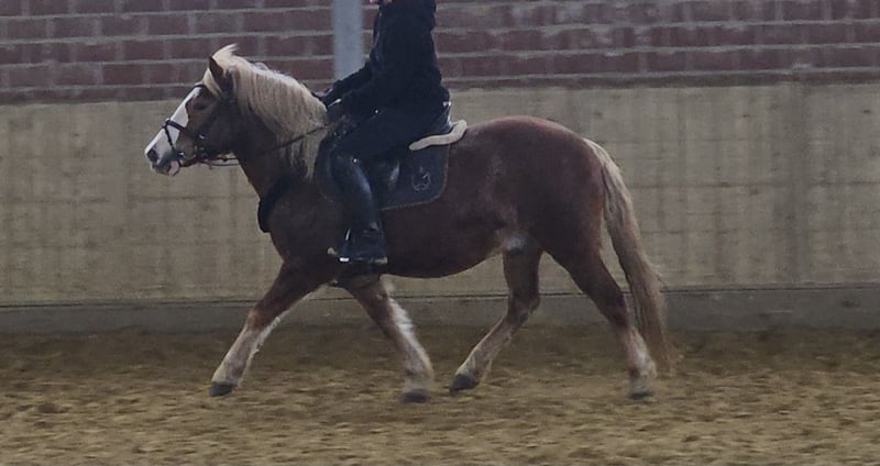 Mo is approximately 14.1 hh (145 cm) tall and is a gelding. He has a solid foundation, is well-built, and has a good frame. A small horse that covers a lot of ground. Mo has been ridden exclusively in the outdoor terrain so far. He is being sold privately with a heavy heart. Since Mo has been listed for sale, he has been further trained indoors. He works wonderfully and is a real pleasure to ride in daily training. We do not have an indoor arena ourselves, so he is transported daily on a trailer, which he handles very confidently—just like a competition horse. He also shows himself to be very well-mannered and a calm, cool type. We could easily imagine Mo also as a therapy horse. He has always been healthy and has been kept robustly. He is barefoot. He is currently stabled in a box but can also be kept in an open stall. For more information, please contact us at: 0177/2721831.
