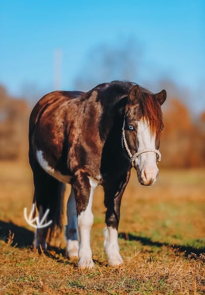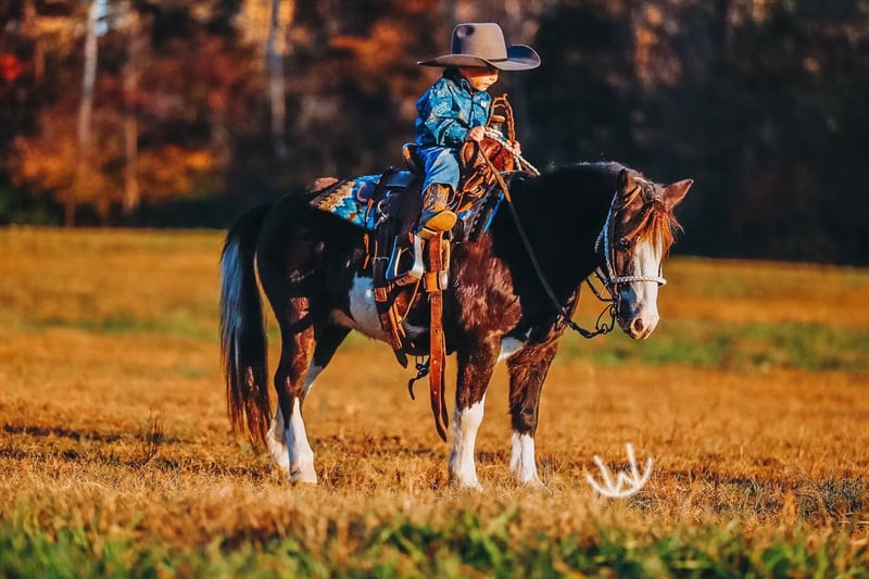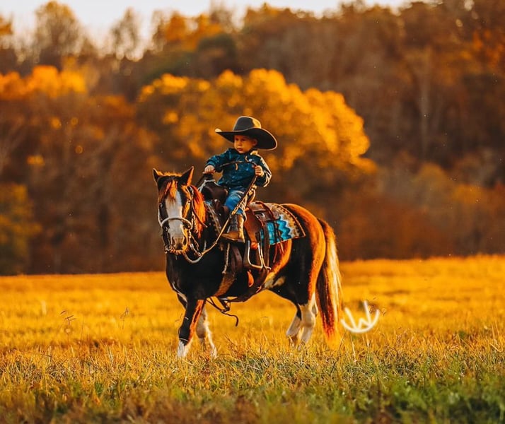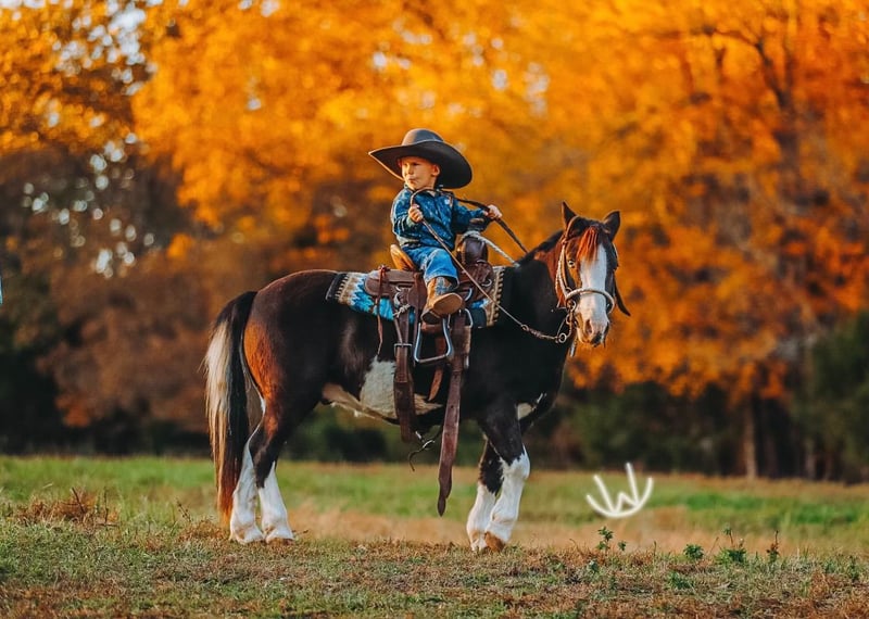 🎁 𝐈𝐍 𝐓𝐈𝐌𝐄 𝐅𝐎𝐑 𝑪𝒉𝒓𝒊𝒔𝒕𝒎𝒂𝒔 🎁 Happening now thru TUESDAY | DECEMBER 9th - Available EXCLUSIVELY on Ponybid's website! For more details and to register visit: www.Ponybid.com CONSIGNOR CONTACT: Rockin W Ponies • Double R Ranch 931-623-1706 LOCATION: Lyles TN BREED: Pony REGISTERED: No COLOR: Pinto HEIGHT: 42 AGE: 8 GENDER: Gelding Meet Hotshot, the cutest, sweetest pony! He looks just like a half sized Gunner-bred Quarter horse with his absolutely striking appearance, black and white pinto with beautiful blue eyes. He stands 42” and he’s 8 years old. Very well built, he’s thick and stout, with the cutest face! Hotshot has become a social media star with his little two year old rider, Cooper, racking up nearly 14 million views online and going viral multiple times! Families have loved watching their adventures and seeing how steady, brave, and loving Hotshot is, while Cooper learns the ropes and gets into mischief. He has a quiet, sensible mind that makes him very reliable in all sorts of settings, from the trail to casual rides around the pasture, or being led down the road. When you are a cute little pony, with a baby cowboy onboard, causing chaos and pretend shooting bad guys in the bushes, you’ve got to be extra steady and careful. Hotshot’s ground manners are excellent as well, He is easy to catch, loves being brushed and fussed over, and stands quietly all day while little people try to get his tack all sorted out. Kind hearted, gentle, and patient, he is the type of pony who makes children feel safe and proud every time they are around him- and parents thankful they can trust him! He will meet you at the gate, he’s in your pocket and always friendly. Under saddle, Hotshot shines as a trail pony and adventure partner. He has done everything from solo rides in the woods, with wildlife all around, to being ponied by a big horse, visiting grandparents down the road, moving cattle, riding in town with traffic and noise- and even coming inside our house! He crosses water, steps over logs, can lead or follow a group. Hotshot is forgiving for beginners yet confident and solid enough for kids ready to ride independently. Hotshot is parent, and Cooper, approved. There are so many bad ponies out there, it makes these rare unicorn ponies shine that much brighter, even more special! We carefully select a couple of very nice, safe ponies every year. Our boys help get them ready to offer for Christmas- and they are so proud to offer Hotshot as one of the two! He sells 100% sound with a recent clean PPE performed by Dr. John Laster DVM of Todd County Animal Clinic, included at the end of the pictures. Located in Lyles TN. Nationwide shipping available, we are happy to help arrange transport. He is welcome to stay free of charge, until Santa makes arrangements for Christmas if need be! For more information or to schedule a visit, contact Rachel Vick at 931 623 1706.