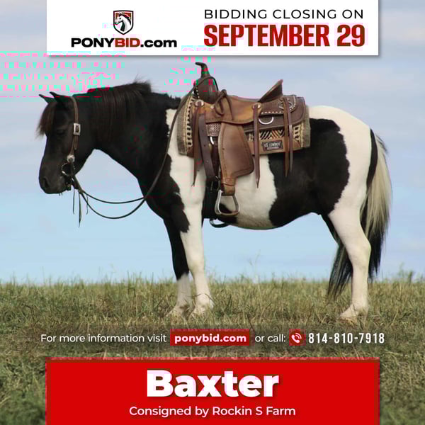 🐴 𝒕𝒉𝒆 𝐅𝐀𝐋𝐋 ℙ𝕆ℕ𝕐 𝑺𝒑𝒆𝒄𝒕𝒂𝒄𝒖𝒍𝒂𝒓🐴 Happening now thru MONDAY | SEPTEMBER 29th - Available EXCLUSIVELY on Ponybid's website! For more details and to register visit: www.Ponybid.com CONSIGNOR CONTACT: Rockin S Farm 814-810-7918 LOCATION: Rebersburg, PA BREED: Pony REGISTERED: No COLOR: Black and white paint HEIGHT: 10.3 AGE: 7 GENDER: Gelding 🌟🌟Baxter🌟🌟 Here's a gorgeous black and white paint pony gelding that is very well broke to ride and drive and safe for children to play around on , he's been there and done that kind of guy, the past several years he was taking the children to school on the main highway and is very trustworthy, he will stand tied all day with no fuss and then safely bring them home, he's been ridden all over the farm and even worked the cattle. Baxter also has been trail ridden by the children and been hauled to state parks for trail rides, he loads and trailers well with no issues, he will ride out alone or with a group, he is not barn or buddy sour and always takes care of the children He also rides in the arena and will drag a tarp and play bounce ball , he's definitely a cool pony with lots of experience in different places Baxter sells 100% sound with no issues, no founder issues and is up-to-date on farrier and dewormer as well as a current Coggins and health certificate We are happy to assist in arranging transportation anywhere in the US