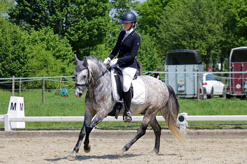 Zum Verkauf steht ein 7-jähriger Apfelschimmel-Wallach mit einer Größe von ca. 144 cm. Er ist ein motiviertes, lernfreudiges Pony mit Talent in Springen, Dressur und eignet sich auch super für die Freizeit. Im Umgang ist er freundlich und interessiert, braucht aber eine sichere Reiterperson, ein reines Anfängerpony ist er nicht. Kann aber durchaus auch von Kindern geritten werden. Unter dem Sattel macht er gut mit, hat eine solide Grundausbildung und zeigt sowohl in der Dressur als auch am Sprung Potenzial. Er ist aktuell barhuf, gesund und wird regelmäßig geimpft sowie dem Schmied vorgestellt. Der Verkauf erfolgt aufgrund der Aufgabe des Reitsports. Weitere Infos und Videos gibt es gerne auf Anfrage. Ein gutes Zuhause steht an erster Stelle.