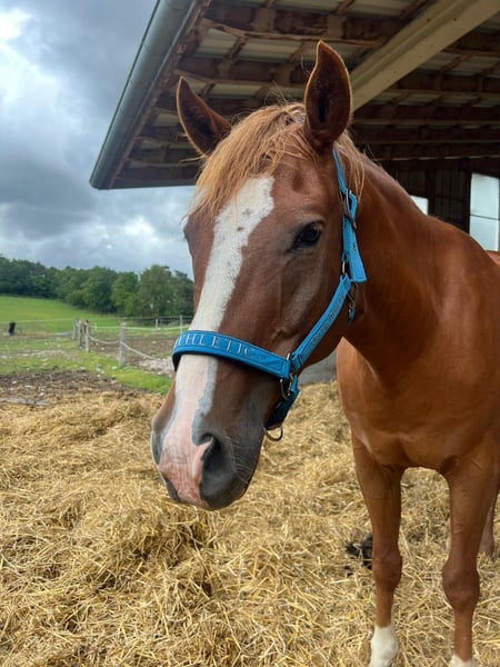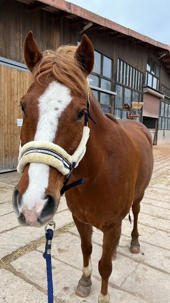 Ole is a handsome, western-trained small horse gelding born in 2017. With his friendly chestnut coat and a height of approximately 15.0 hands, he is a real eye-catcher. He impresses with good conformation and a balanced, friendly temperament. At the age of four, Ole was diagnosed with osteoarthritis in both knees; however, this only mildly restricts him. Recent X-rays show that his condition has not worsened over the past four years. With regular, consistent exercise and appropriate supplementary feed, he is suitable for riding as usual. He currently lives in a harmonious herd of geldings in an open stable and is only offered in outdoor turnout. Ole is farrier-friendly and is familiar with the veterinarian and trailer. Character-wise, he is gentle, people-oriented, and very friendly. Ole is open-minded, playful, and has a charming, humorous personality—sometimes quite the little rascal. Fundamentally, Ole is a balanced and reliable horse that can bring great joy in the right environment. Due to his playful nature, he is not suitable as a beginner or children's horse. However, with guidance from a trainer, he can also be well-handled by less experienced riders. Ole has solid western training, knows the terrain, and rides calmly in outdoor settings, although he could still gain more experience in this area. He was last regularly exercised about a year ago and should be gradually retrained. He is also familiar with English saddles and could be easily transitioned to English riding. Ole is being offered with a heavy heart, as his owners can no longer provide him with enough time, movement, and stimulation. He will only be placed in caring, responsible hands and is not intended for riding schools or dealers. His tack (except for the saddle) will be included.