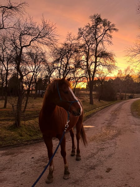 Ole is a handsome, western-trained pony gelding, born in 2017. With his friendly chestnut coat and a height of approximately 150 cm, he is truly eye-catching. He impresses with a good conformation and a balanced, friendly temperament. At the age of four, Ole was diagnosed with osteoarthritis in both knees; however, this only minimally affects him. Recent X-rays confirm that his condition has not worsened over the past four years. With regular, consistent exercise and appropriate supplementary feed, he is rideable as usual. Currently, he lives in a harmonious herd of geldings in a pasture turnout and is only available for sale in an outdoor paddock environment. Ole is farrier-friendly and is familiar with both the veterinarian and trailer. Character-wise, he is gentle, human-oriented, and very friendly. Ole is open-minded, playful, and has a charming, humorous personality—sometimes a bit of a little rascal. Fundamentally, Ole is a balanced and reliable horse that can bring great joy in the right environment. Due to his playful nature, he is not suitable as a beginner or children's horse. However, with guidance from a trainer, he can also be well-handled by less experienced riders. Ole has a solid western riding education, is familiar with trail riding, and rides calmly in that setting, although he could benefit from gaining a bit more experience in this area. He was last regularly exercised about a year ago and should be gradually retrained. He is also familiar with English saddles and could be easily transitioned to English riding. Ole is being sold with a heavy heart, as his owners can no longer provide him with the time, exercise, and mental stimulation he needs. He will only be placed in responsible, caring hands and is not intended for riding schools or dealers. His tack (except for the saddle) will be included.
