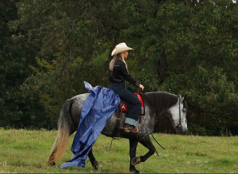🍂 𝓐𝓾𝓽𝓾𝓶𝓷 𝑨𝑳𝑳 𝑺𝑻𝑨𝑹 𝑳𝑰𝑵𝑬𝑼𝑷 🍂 Happening now thru MONDAY | OCTOBER 6th - Available EXCLUSIVELY on HorseBid's website! For more details and to register visit: www.Horsebid.com CONSIGNOR CONTACT: Lacey Wilf 501-940-8704 LOCATION: Quitman, AR BREED: American Draft Pony REGISTERED: Yes REGISTERED NAME: Outback Acres Queen COLOR: Dapple Grey HEIGHT: 14.1 AGE: 9 GENDER: Mare Madea is a 2016 model registered draft pony whose elegance is matched only by her versatility. Standing at 14.1 hands, she is the perfect height—substantial enough to carry the biggest adults with ease, yet accessible enough for younger riders, making her a true fit for all sizes. With her striking silver-dapple coat, strong bone, and graceful carriage, she is the very picture of refinement—substantial enough to impress, yet soft and feminine in her expression. She carries herself with poise in every setting, whether stepping into an arena, gliding down the trail, or moving gracefully in harness. She is as versatile as she is beautiful, riding both English and Western with ease and driving with the polished precision of a true lady. In harness, she is nothing short of exquisite—responsive, stylish, and steady, whether pulling a carriage through town, a buggy down country lanes, or working in a more formal setting. Her driving experience is extensive, and she moves with a fluid rhythm that makes her both a pleasure to watch and a joy to handle. Always soft in the lines and confident in her step, Madea exemplifies grace and dependability as a driving pony. Nothing seems to ruffle her composure—she remains unbothered by tarps, flags, fireworks, heavy traffic, or even the hum of a drone. The fast-paced hustle of the cow sale doesn’t disturb her, further proving her unshakable mind and steady presence. On the trail, Madea’s elegance shines through in her balance and confidence. She takes water, bridges, logs, and brush with the same calm assurance as she does the open road. Every ride with her feels effortless, enjoyable, and distinguished, making her a partner who elevates even the simplest outing into something memorable. Yet it is her personality that truly sets her apart. Madea adores attention and soaks up every moment of admiration, greeting people with kindness and warmth. She is gracious on the ground—easy to catch, gentle with her feet, and perfectly mannered to saddle, bridle, wash, and haul. Her natural class and calm demeanor make her a favorite in any barn, and her presence is one that cannot be overlooked. Elegant, gentle, and endlessly capable—Madea is not just a pony, but a statement piece: one who embodies grace, substance, and timeless beauty while being safe and dependable in every way.