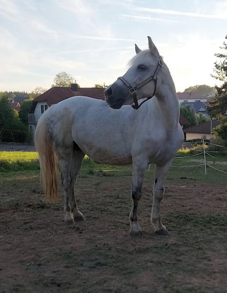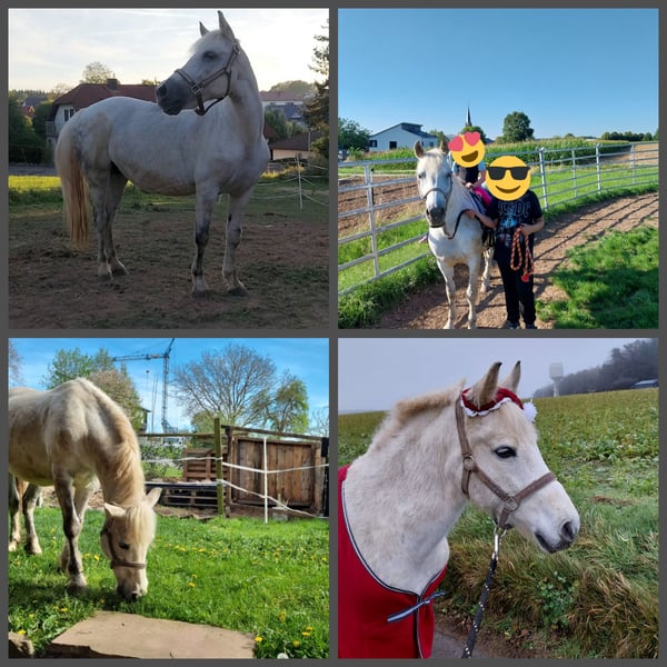 Da wir nicht wissen, wie lange Sie da noch stehen kann ( da Haus und Hof verkauft wird),wäre es schön wenn Sabrina direkt in ein neues Zuhause ziehen kann und nicht irgendwo eine eventuell schnelle Zwischenlandung finden muss. Aus Diversen Gründen müssen wir uns von unserer Ponystute Sabrina (10.04 2015) trennen. Sie hat ein Stockmass von ca. 1,37 cm Sie ist seit Juni 2024 im meinem Besitz und leider anders als uns vermittelt wurde KEIN (reines) Kinderpony, das wohl schon sehr viel negatives erleben musste. Bei der Bodenarbeit hat sie stetz Spass und zeigt sich lernwillig,(noch ist sie am Anfang). Bevor Sie zu uns kam muss sie schon Fohlen gehabt haben. Wie viele oder wann ist uns vollig unbekannt sowie ihre Rasse auch. In ihrem alten Zuhause hat sie in einer Paddockbox gelebt, (was ich mir auch wieder für sie vorstellen könnte. Sie kennt aber auch Tags Weide und Nachts Box) und kam nur zum Angeblichen Reitunterricht in die Halle raus und zum Schmied, mit dem sie ihre Probleme hat. Wir arbeiten bereits an diesem Problem, sodas Sabrina uns mittlerweile die Hufen gibt. Doch die Hinterhand macht Probleme, da sie ab und an Probleme mit der Kuppe hat die schmerzt, was Sie auch nur bedingt reitbar macht und wenn, dann für sehr leichte Reiter oder Kinder. Desweiteren hat Sabrina eine Narbe am linken Vorderbein,die sie aber beim Kauf schon hatte und auch keiner etwas dazu sagen konnte. Vor ein paar Monaten mussten wir leider feststellen,daß Sie ein Melanom unter der Schweifrübe hat, was laut Tierarzt erstmal nicht schlimm ist und unter Beobachtung gehalten werden sollte. Ponytypisch hat sie einen Dickkopf,der sich aber händeln lässt. Sabrina versucht sehr Dominant zu sein, ist aber auch sehr schreckhaft,woran man auch noch weiter arbeiten muss. Was der Umgang mit anderen Pferden angeht, kann ich leider nicht viel dazu sagen, da wir sie aktuell nur mit einer Holsteinerstute zusammen stehen haben und dies relativ gut klappt. Desweiteren ist sie nicht immer Zaun sicher (2 mal durch den Zaun) Sabrina braucht eine liebevolle ,klare aber auch strenge ,,Erziehung", die teilweise bei Null starten muss und eine Person auf die sie sich zu 1000 Prozent verlassen kann mit viel Pferdeerfahrung und Geduld. Für Kinder ist sie noch NICHT geeignet, dafür müsste man sehr viel mit ihr arbeiten. Wir haben Sie bis jetzt erst 1 mal verladen was gut geklappt hat. Sabrina bringt ihren Sattel mit,den wir damals beim Kauf dazu bekommen haben, der ihr aber nicht passt. Unsere Tochter hat sie immer nur mit Longiersachen geführt geritten, soweit es ihre Gesundheit zuließ. Für weitere Fragen stehe ich Ihnen sehr gerne zur Verfügung.