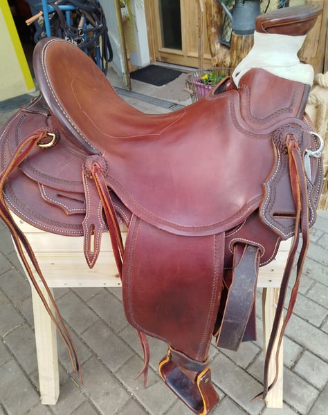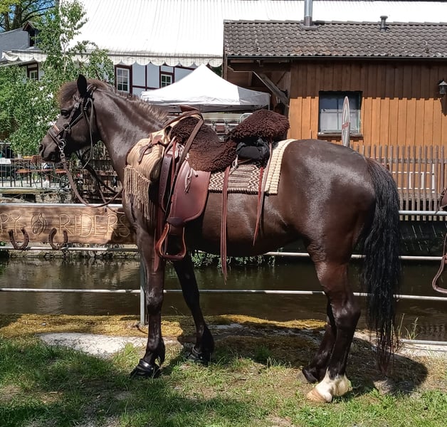 Leider müssen wir aus gesundheitlichen Gründen unsere Pferde schweren Herzen aufgeben Daisy ist eine liebe, zierliche 13 jährige braune Stute Stockmaß ca. 142 Freizeitgeritten im Westernsattel mit Sidepull – ohne Gebiss Barfussgänger, kein Gewichtsträger Offenstallhaltung, keine Boxenhaltung gewöhnt Weidesicher, Straßensicher, Geländesicher Daisy wurde überwiegend im Gelände geritten und war bei Wanderritten dabei Sie ist auch in der Bodenarbeit sehr gelehrig und arbeitet freudig mit Sie ist sehr anhänglich aber etwas schüchtern Anderen Pferden gegenüber ist sie sehr zurückhaltend und geht jedem Ärger aus dem Weg Daisy braucht einen treuen Partner, der sich viel mit ihr beschäftigt und arbeitet KEIN NOTVERKAUF Kein Verkauf an Händler oder für Kinder Daisy wird, mit ihrem für sie handgefertigten Westernsattel verkauft Daisy kann nach Vereinbarung angeschaut oder Probe geritten werden. Weitere Fotos von Daisy oder dem sehr schicken Unikatsattel schicke ich gerne.