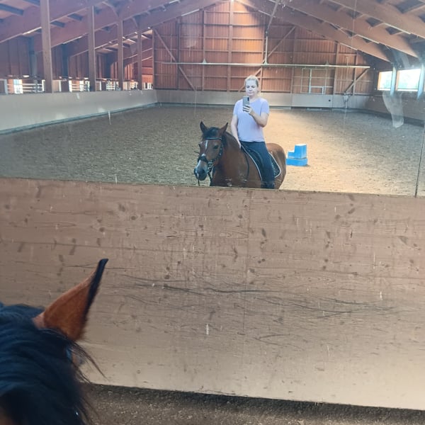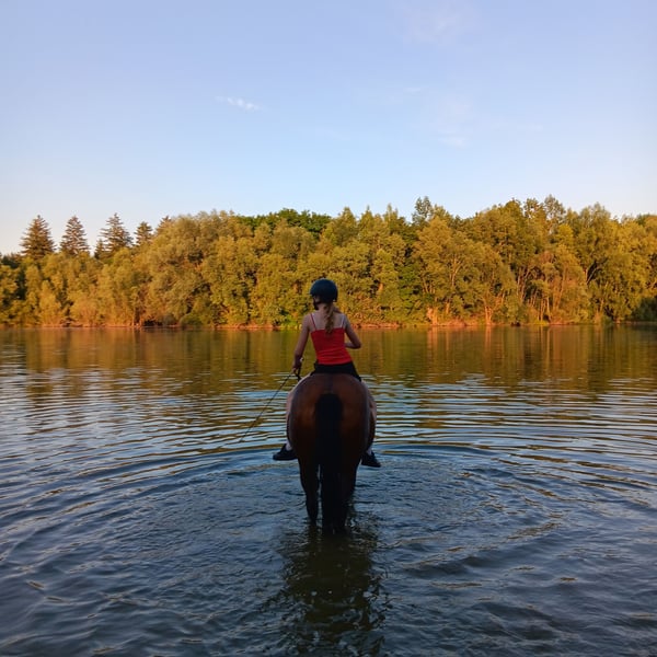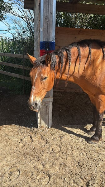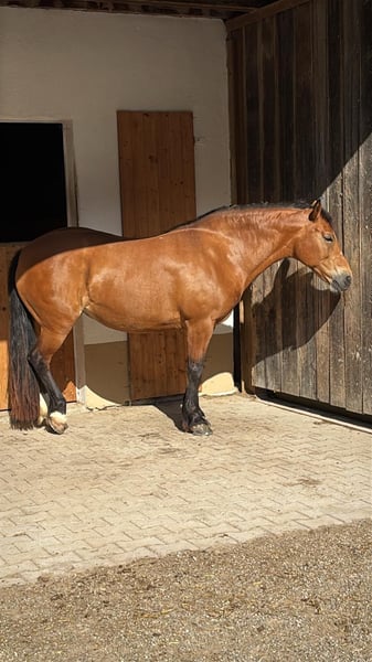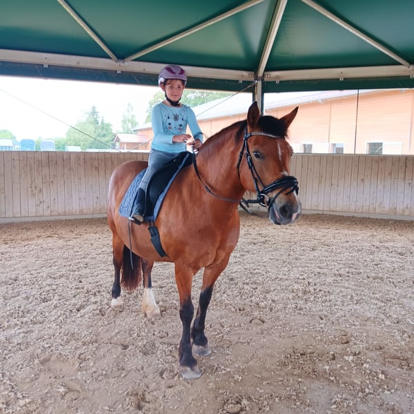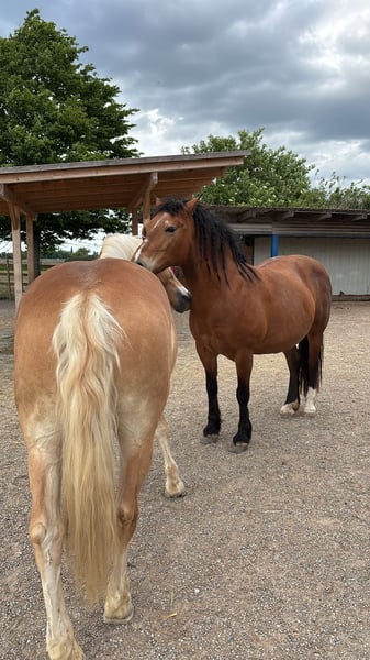 Ich suche ein liebevolles neues Zuhause für Siria. Sie ist 1,50 groß und kräftig gebaut, deckt Große Reiter ab. Siria geht am liebsten ins Gelände, hier ist sie sehr trittsicher und nicht schreckhaft. In der Reithalle läuft sie nicht so gerne, hier braucht es Durchsetzungsvermögen um sie auf den Hufschlag zu halten. Sie ist aber niemals böse. Für Kleinkinder ist sie nicht geeignet. Bei uns steht sie tagsüber in einer kleinen gemütlichen Herde und über nachts in der Box. Offenstall kennt sie auch. Bei uns war sie keinen Tag krank. Hat regelmäßig Physio und Hufschmied bekommen. Siria muss Fremde erst vertrauen lernen, dann macht sie alles für Einen. Sie kennt es gebisslos geritten zu werden und auch ohne Sattel. Gerne können wir einen Termin zur Besichtigung und Probereiten ausmachen. Hierbei nehmen wir uns Zeit und verlangen daher eine Gebühr von 45€, welche bei Kauf verrechnet wird. Es gibt eine Dressursattel und einen Deuber Barocksattel, der bei Bedarf dazu erworben werden kann.