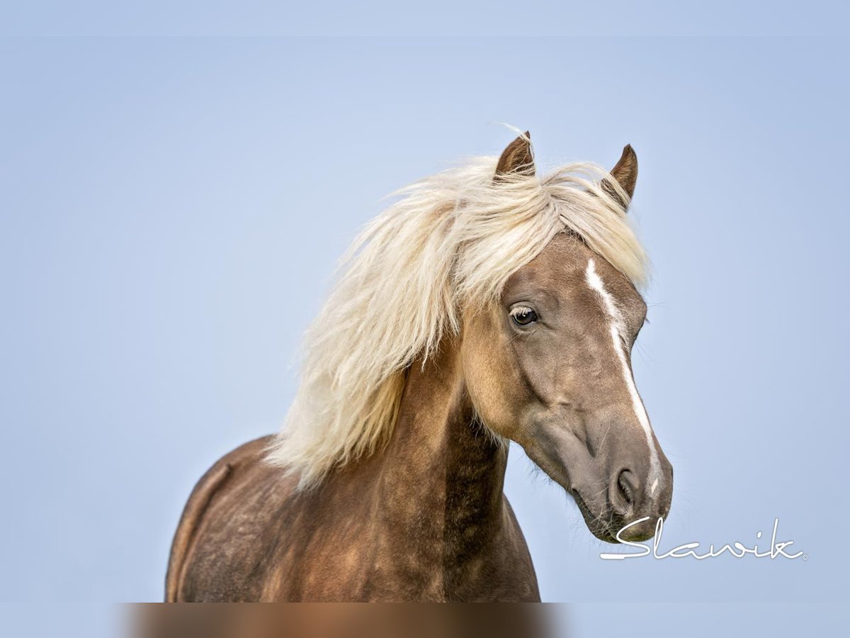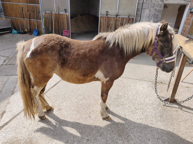 Lillifee is a Welsh Pony mare with a special coat pattern in Kohlfuchs pinto coloring. She is familiar with foal handling and the Schmid method and is accustomed to children.