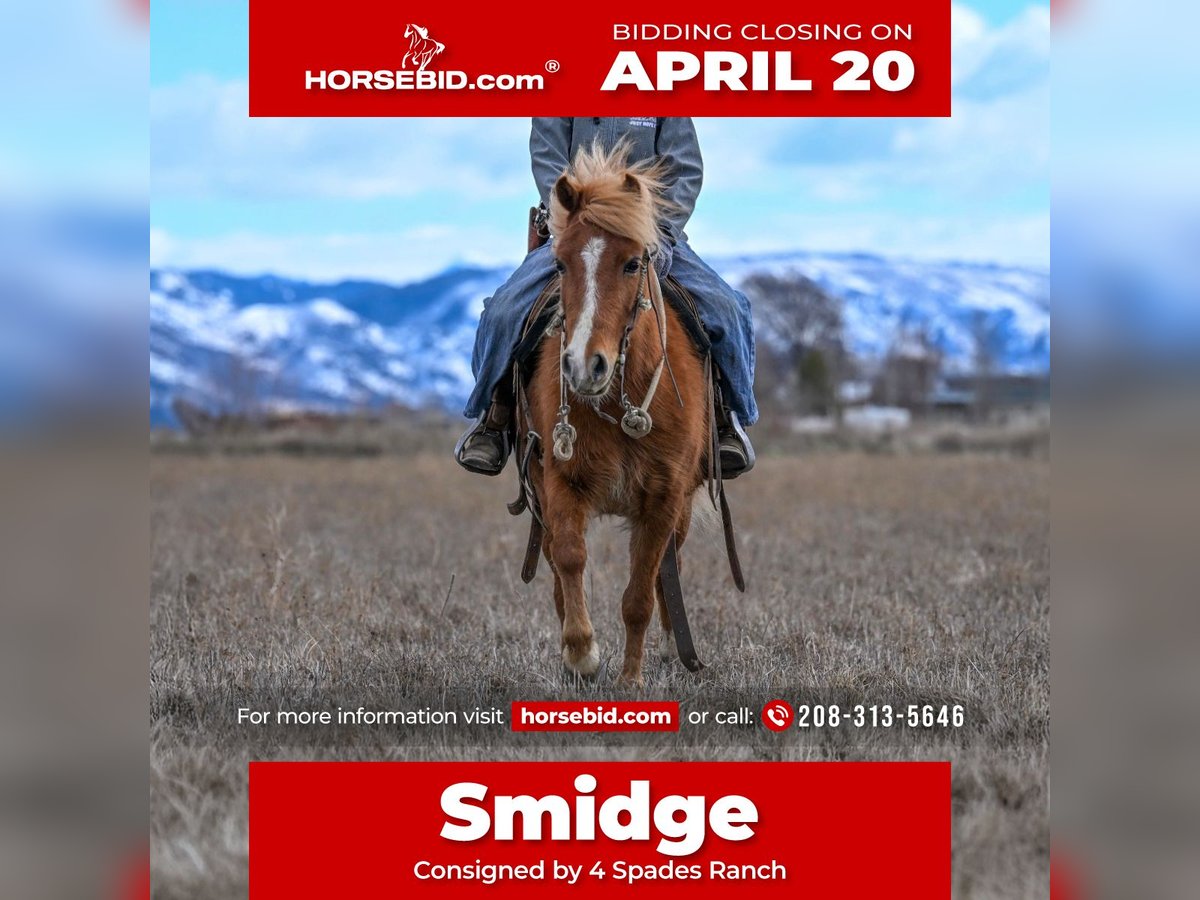 Smidge is a coming 4-year-old sorrel pony mare standing right at 43 inches tall, and she is built the way everyone is looking for—thick made, clean-headed, and carrying that big hip that gives her both presence and power.
