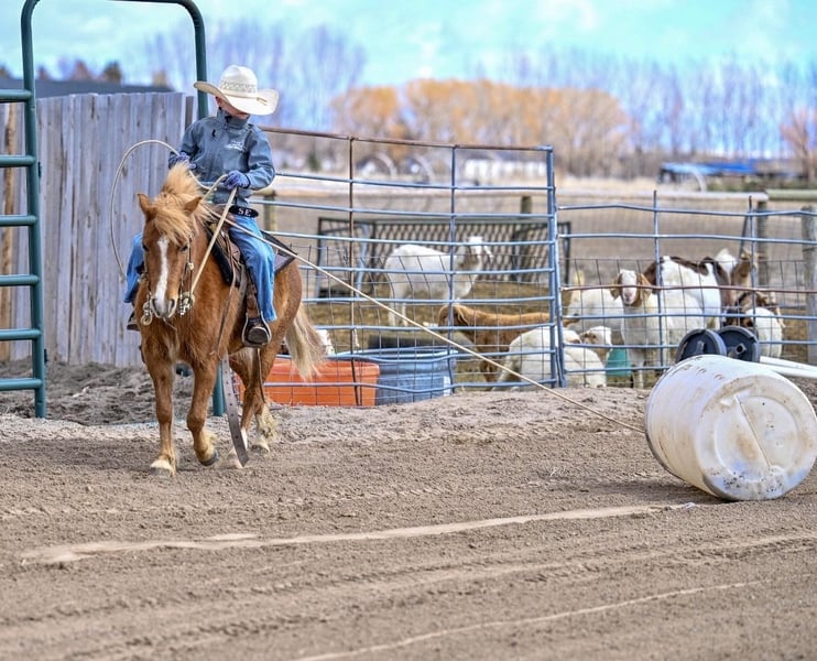 Smidge has been exposed to real ranch life, playtime chaos, and structured training—and she handles it all with a quiet confidence and a kind, forgiving nature. She is the type of pony that not only takes care of her rider but also helps them grow.