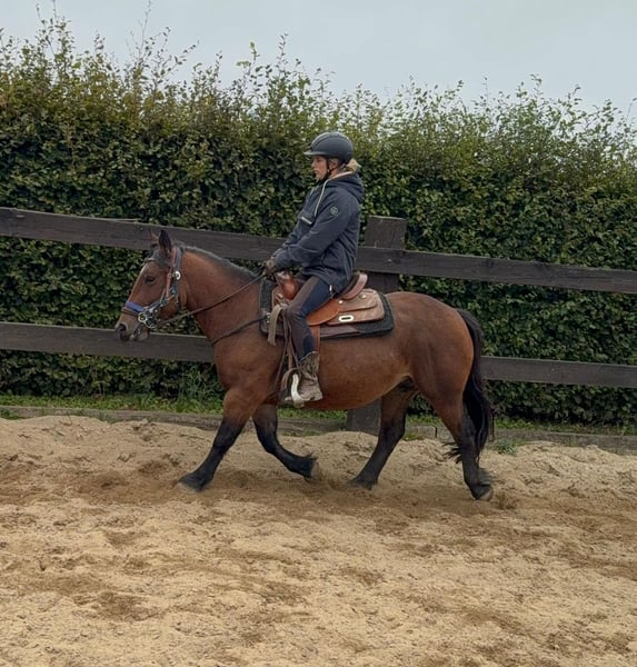 Zum Verkauf steht eine 4 Jahre alte, etwa 137cm große, sehr kräftige Ponystute. Sie sieht aus wie ein mini Kaltblüter und deckt sehr gut ab. Sie bewegt sich trotzdem relativ sportlich vorwärts und ist keine totale Schnarchnase. Trotzdem sehr brav und entspannt. Sie ist freizeitmäßig geritten und geht alle Gangarten brav mit Reiter. Sie wird aktuell noch regalmäßig weiter geritten. Im Umgang ist ebenfalls sehr brav und ruhig. Sie wäre bestimmt auch ein tolles Pferd für geführte Kinder Ritte oder ähnliches. Krankheiten oder Allergien sind nicht bekannt. Eine AKU darf gerne gemacht werden. Für das Probereiten, Vorreiten oder anderes Ausprobieren des Pferdes berechnen wir 35€. Beim Kauf wird dies gutgeschrieben. Gerne anrufen oder eine Nachricht senden 0157 36803742 Alle Angaben ohne Gewähr, Preisänderungen vorbehalten, Transport möglich, Onlinekauf möglich