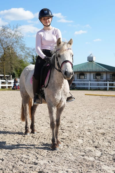 „Sissi“, tolles Nachwuchspony mit Potenzial. Super lernwillig und mit tollen Gängen ausgestattet. Am Sprung zeigt sie viel Potenzial und ist daher mit weiterer Ausbildung ein tolles Pony für Springprüfungen. Im Umgang etwas zickig, daher nur als Kinderpony geeignet, wenn Erwachsene mithelfen.