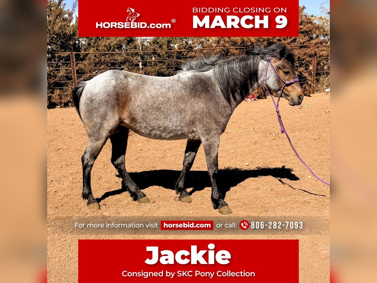 ℳ𝒶𝓇𝒸𝒽 ♦️𝐑𝐈𝐃𝐄𝐑'𝐒 𝐂𝐇𝐎𝐈𝐂𝐄♦️ Happening now thru MONDAY | MARCH 9th - Available EXCLUSIVELY on HorseBid's website! For more details and to register visit: www.Horsebid.com CONSIGNOR CONTACT: SKC Pony Collection 806-282-7093 LOCATION: Canyon, TX BREED: Pony REGISTERED: No COLOR: Bay Roan HEIGHT: 12 hands AGE: 8 GENDER: Mare Jackie is the cutest 12.1 hands bay roan pony mare you have ever laid eyes on. She’s the most perfect size with a sweet kind disposition a willing attitude and so so broke and gentle!! Jackie’s resume is a long one so get ready! She’s been used for all the events at the playdays and Jr rodeos. She will go whatever speed you ask. Our kids have used her to gather, brand and ship cattle, she’s solid and quiet. She’s also been used to carry the flag in the grand entry, ridden in parades downtown, taken on many trail rides to the Palo Duro Canyon and the Canadian River and she’s even been rode English! Jackie is truly a versatile all around pony we just can’t say enough good about her! My absolute favorite thing about Jackie is she NEVER gets fresh. Even when we leave her off for a long period of time, our little ones can still go catch her out of a pasture crawl on bareback and go for a joy ride. She’s happy to go! It’s not un common to see our kids and their friends riding Jackie double after school to the neighbors house, or going to rope the sled, they have even rode her around fireworks and gun fire. Nothing phases her, she’s is a dream pony for any age or level child. Jackie is broke broke too. She neck reins around with ease and trots smooth and has a soft lope. She has a spin that will make dads big horse look bad, stops like she should and side passes both ways. You can open and close gates on her use her to load trucks, pony colts, whatever you need she’s more than capable! Jackie is the kind of pony that adapts to any level of child. from the little beginners to the kids that want to lope through the payday events or go rope a calf with dad Jackie fits the bill! She is truly one of a kind