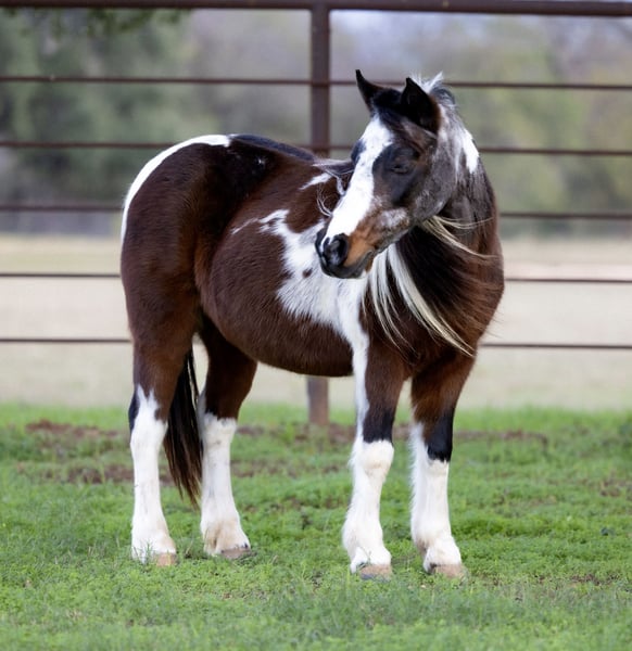 Dora 8 Yr old 47 Inches Bay Roan Tobiano Pony Mare