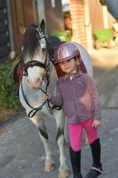 ** Rosie – das perfekte Kinder-Verlasspony** Suchen Sie nach einem treuen Begleiter für Ihr Kind? Dann ist Rosie genau das richtige Pony! Dieses wunderbare Verlasspony ist nicht nur brav im Umgang, sondern auch ein wahrer Traum auf dem Turnier. **Highlights von Rosie:** - **Erfahrung:** Sie läuft alle GGAs einwandfrei und hat zahlreiche Siege in Dressur und Springen bis zur Klasse E errungen. - **Eignung:** Ideal für kleine Reiter, die ihre ersten Sprünge wagen möchten, und auch in der Führzügelklasse ein echter Hit. - **Gesundheit:** Rosie ist kern gesund, hat keine Vorerkrankungen und ist zaunsicher. - **Verträglichkeit:** Sie ist absolut verträglich und hat keine Probleme in der Herde, selbst mit größeren Pferden. **Besonderes Angebot:** Bei sofortiger Mitnahme erhalten Sie 5% Rabatt auf den Verkaufspreis! **Testmöglichkeit:** Wir bieten Ihnen die Möglichkeit, Rosie eine Woche bei uns zu testen – begleitet von talentierten Trainern. Diese Probewoche kann mit Unterricht kombiniert werden. Bitte beachten Sie, dass eine Probegebühr anfällt, die nicht vom Kaufpreis abgezogen wird. **Probereiten:** Gerne können Sie Rosie bei uns anschauen. Die Kosten für das Vorreiten oder Probereiten betragen 30 € pro Person. Wir geben Rosie nur in die besten Hände ab – sollte alles passen, würde meine Tochter sie gerne weiterreiten. Zögern Sie nicht, uns zu kontaktieren! **Rosie – ein Pony, das Herzen erobert!**