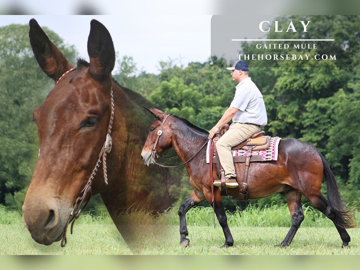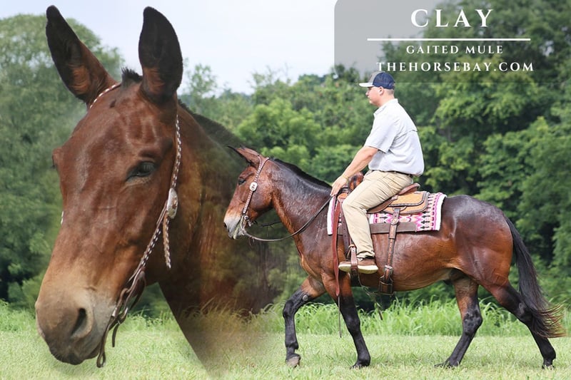 Clay is een stevige 15.2 hh, 10-jarige, van nature gaited mule. Hij is gereden op de snelwegen en is verkeersveilig. Clay is uitstekend op de trails en zal kreken, greppels en boomstammen oversteken, evenals ruig, rotsachtig terrein navigeren. Hij heeft een natuurlijke, vloeiende gang en kan ook loper. Hij is blootgesteld aan diverse dieren in het wild, waaronder herten, kalkoenen en andere dieren zoals koeien en honden, en gaat waar hij ook wordt gevraagd. Hij heeft vele kilometers gereden in de bergen van Oost-Kentucky en heeft elk obstakel op de trail meegemaakt. Hij gaat zelfs de steilste hellingen op en af, over diepe kreken, over omgevallen bomen en over allerlei ruw terrein, terwijl hij altijd zeker van zijn passen is. Clay is perfect voor elke ervaren muilezelaar, maar ook voor de amateur. Aarzel niet om te bellen bij vragen.