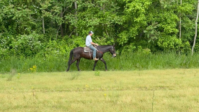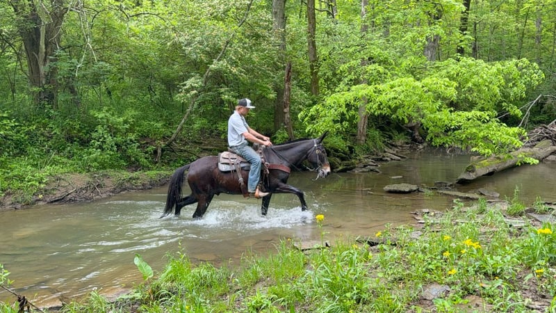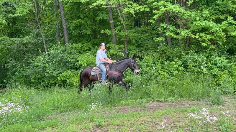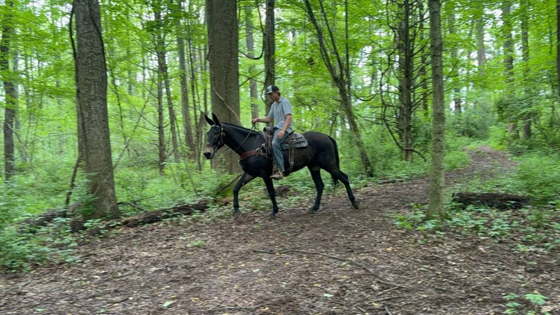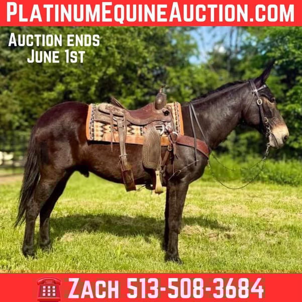 ONLINE AUCTION Place your bids at www.PlatinumEquineAuction.com Starting Bid $3500 Auction ends June 1st, 2025 Need a new saddle? Check out White Rock Saddles on our website or Facebook! Garth is a 13 year old John mule that stands 15.1 hands tall. This is well trained mule with uncountable trail miles. He is a kind mule that aims to please and loves people. Garth is awesome and the trail and very sure footed. He doesn’t look for imaginary things to spook at and is traffic safe. He is fine with trail dogs, rides out alone and in groups of any size. This mule walks calmly on a loose rein, has a nice collected trot and a very smooth canter. He crosses down trees patiently and maneuvers himself with confidence on the rough trails. Garth is over all a nice quiet trail mount that is safe and appealing to the eye. He is a really nice build and is comfortable to sit. Located in Moscow, OH. Contact Brandenburg Stables Zach 513-508-3684 with any questions, to make a Buy It Now Offer or to set up a time to come see him. ONLINE AUCTION Place your bids at www.PlatinumEquineAuction.com Starting Bid $3500 Auction ends June 1st, 2025 Need a new saddle? Check out White Rock Saddles on our website or Facebook!