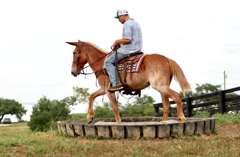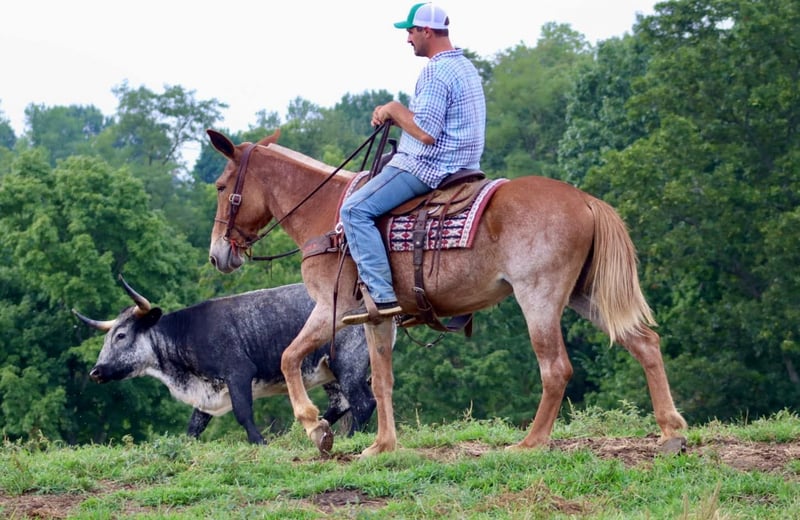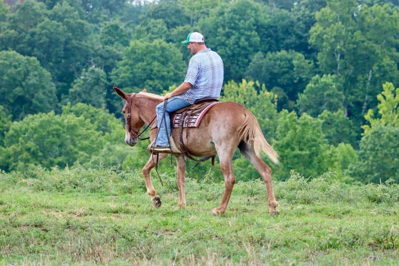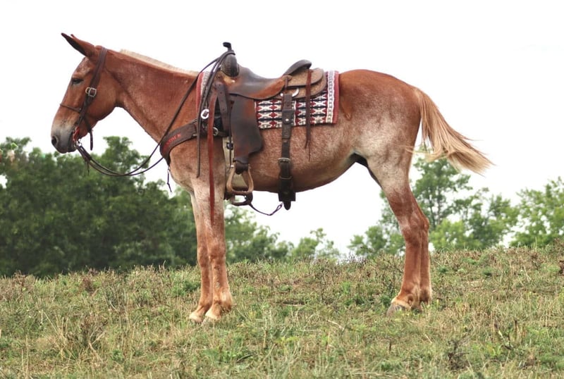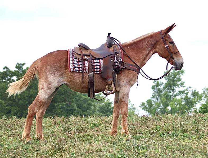 ONLINE AUCTION Place your bids at www.PlatinumEquineAuction.com Starting Bid $3500 Auction ends August 25th, 2024 Need a new saddle? Check out White Rock Saddles on our website or Facebook! Cleo is a 12 year old, 15.1 hand Molly mule. Her pretty sorrel roan color is eye catching. Cleo is a big, sweet Molly mule that is safe. She has countless miles of experience on the trails. She is happy to ride down the trail on a loose rein or you can take her on more extreme and technical trail and she will navigate it with confidence. Cleo is out of a TWH mare and has a nice ground covering walk. She will also lope off with ease. She crosses natural obstacles and terrain with ease. She will ride out alone or with a group. She is happy to ride anywhere in the group, whether it’s leading, middle, or back. In addition to being a very nice riding mule, Cleo also drives. She has driven single and double. She has been on numerous wagon rides and parades. She is traffic safe both undersaddle and in the harness. Cleo stands nicely to tack up. She hauls well and gets along well in group turnout. She does well on overnight camping trips and ties out on the high line. She is ready to head out to the fall trail rides or up in the mountains hunting! We have left her turned out for several weeks at a time, and she rides off quietly when you catch her up to ride again. She handles her ears well, picks up all four feet, and is good to clip. Don’t miss out on a good, honest mule! For more information call Sammi Waugh 704-798-5497 Located in Brooksville, KY. ONLINE AUCTION Place your bids at www.PlatinumEquineAuction.com Starting Bid $3500 Auction ends August 25th, 2024 Need a new saddle? Check out White Rock Saddles on our website or Facebook!