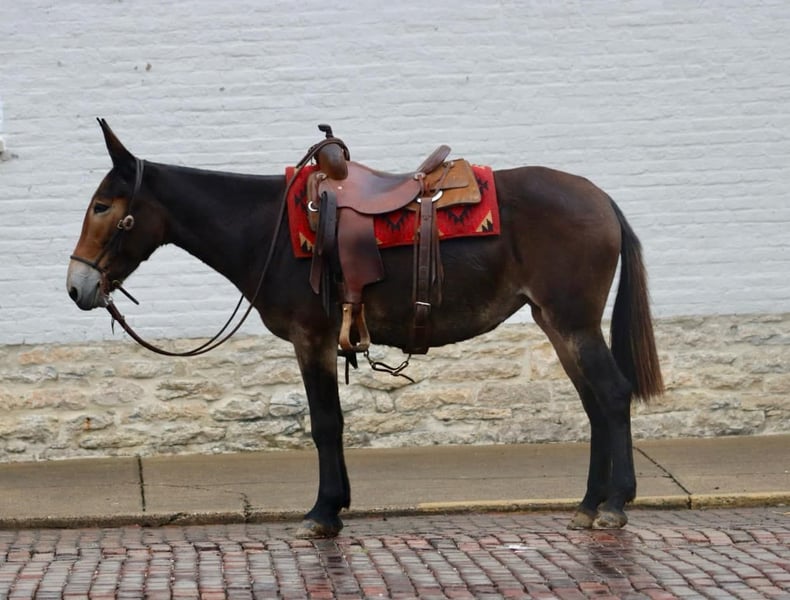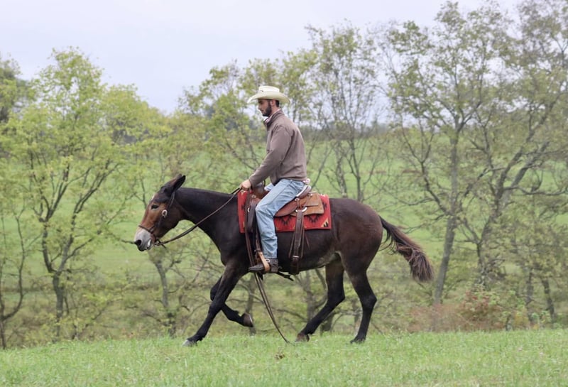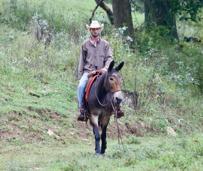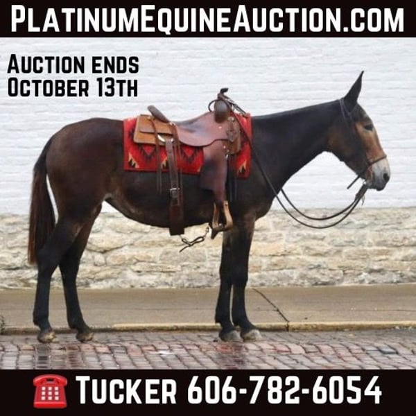 ONLINE AUCTION Place your bids at www.PlatinumEquineAuction.com Starting Bid $3500 Auction ends October 13th, 2024 Need a new saddle? Check out White Rock Saddles on our website or Facebook! Darlene is a 13 year old, 15.1 hand Molly mule. She is the epitome of a perfect trail mule. No matter the trail or experience level of her rider, she will take care of her rider and get them home safely. Darlene will walk, jog, and lope nicely. She has a wonderful, true neck rein like a horse. She moves off the leg, side passes, and backs up. On the trails, she crosses water nicely. She steps over logs, goes down banks and steep hills with grace, and handles narrow/technical trails with ease. Darlene rides out alone or in the group nicely. She is traffic safe as well as quiet riding around farm equipment. She is not the type of mule that is rattled or spooked easily. Rides well in a britchen. Darlene stands nicely for the farrier, easily picks up all 4 feet. She stand for bathing, and mounting. Loads easily. She does well in new places and is excellent on overnight camping trips. Whether you’re looking for a simple trail riding partner, a hunting partner, or anything else, she is a great option for you! For more information, call or text Brookeside Horses Tucker 606-782-6054 Located in Brooksville, KY. ONLINE AUCTION Place your bids at www.PlatinumEquineAuction.com Starting Bid $3500 Auction ends October 13th, 2024 Need a new saddle? Check out White Rock Saddles on our website or Facebook!