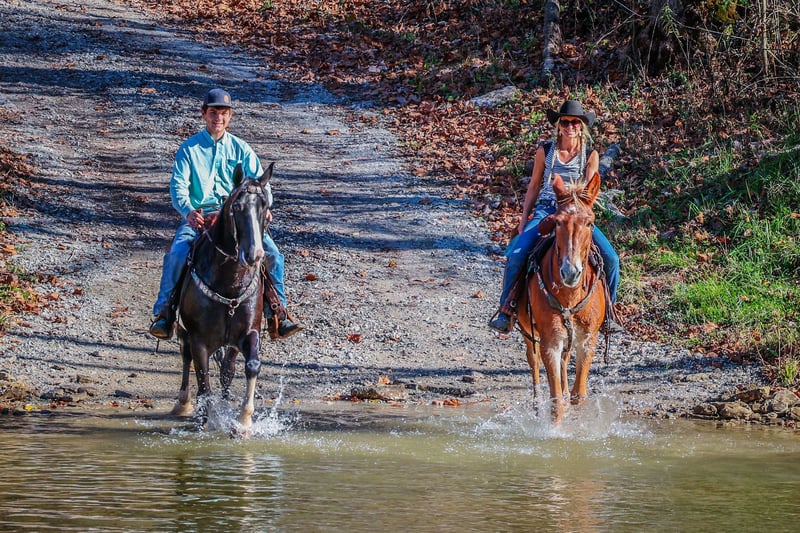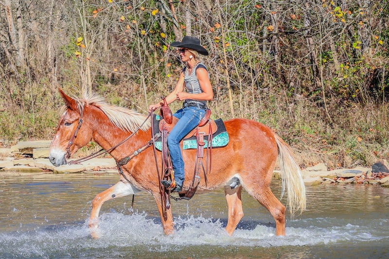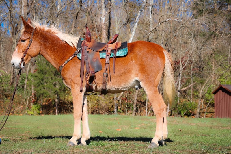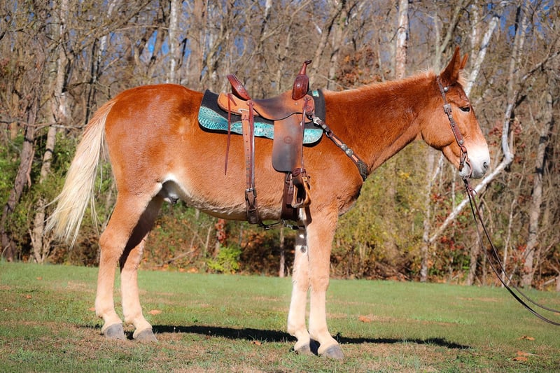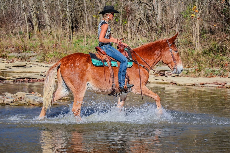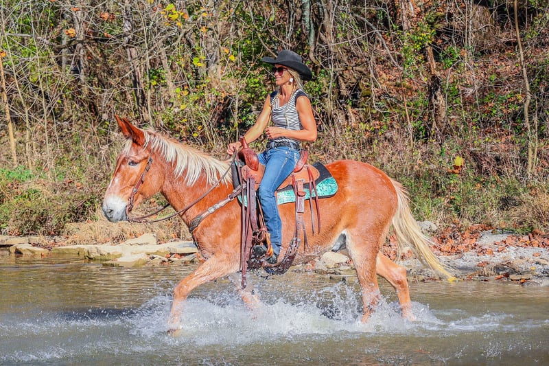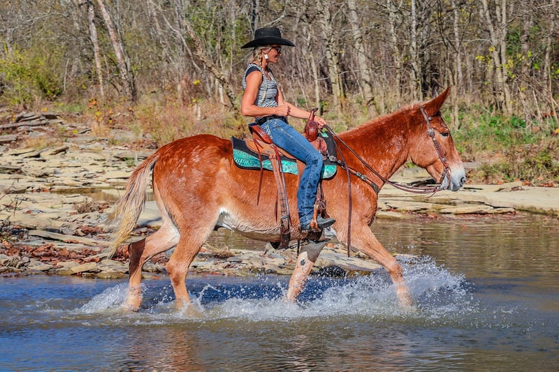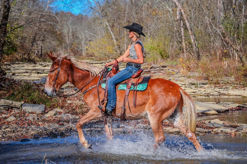 ONLINE AUCTION Place your bids at www.PlatinumEquineAuction.com Starting Bid $3500 Auction ends November 24th, 2024 Need a new saddle? Check out White Rock Saddles on our website or Facebook! This is “SILVERADO”, a beginner friendly GAITED SORREL JOHN MULE that rides as smooth as a Chevy Silverado! Anyone can ride. This mule is very broke, extra gentle, and has a nice handle on him. He has been used for ranch work, checking cattle in the pasture, and trail riding. He has been to the mule shows and is fancy enough to bring home the ribbons. He will one step lope. He has a true one hand neck rein and you can open and close gates off of him. He is solid, gentle, and well broke. He stands 16.1 hands tall and is 14 years old. He has a super smooth gait that is so comfortable and enjoyable to sit. He has a collected canter and will lope nice circles and catch his leads. He also moves off of leg cues and stops on whoa. He has been across rivers on the trail rides and doesn’t bat an eye at fast rushing water. He is confident and brave on the trails when out alone. He is not spooky and not nervous. You can pick up all four feet and handle his ears. He stands with or without a mounting block. He has packed saddle bags, is fine with dogs trailing his heels, and he has been to town. This mule is so cool and will make even timid riders feel confident. He is obedient, patient, and calm. Contact HH Horses Erin 304-238-4155 with any questions. ONLINE AUCTION Place your bids at www.PlatinumEquineAuction.com Starting Bid $3500 Auction ends November 24th, 2024 Need a new saddle? Check out White Rock Saddles on our website or Facebook!
