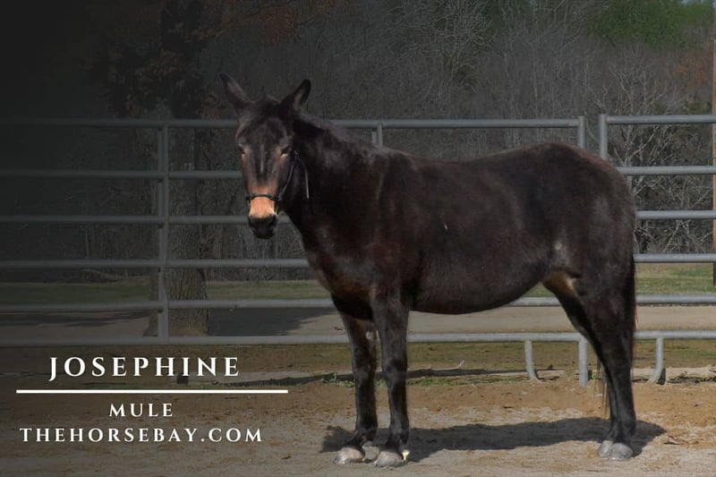 OPEN BIDDING ON THEHORSEBAY,COM. SALE ENDS ON 01/22. More information is available on the website, including an UTD vet inspection, Coggins, video, images, and the owner's contact information to ask questions, request information, or make arrangements to come to visit. Josephine is a 9-year-old, 13.2 hand beautiful bay mule. She has been owned by Charles and Virgina Chandler for several years. Josephine was Charles’s personal ride. They have been many miles together in those years. They traveled all over southeast Oklahoma trail riding. Sadly, a few days before Thanksgiving this past year, Charles passed away. Josephine was lead in his funeral presession carrying his boot backward boots. She rode with him until the end. Josephine is a very sweet mule. She loves attention. She is easy to handle, saddle, groom, and trailer. Josephine will ride confidently and safely in the front of the trail ride or calmly and quietly in the back of the pack too. She is just easy going no matter the terrain. She will go up and down steep hills slowly, she will cross water without any issues, she carries a crupper and a breeching, and she is good around dogs. Josephine is an easy keeper, Charles always said “she could stay fat on air”. Josephine does not need to be rode regularly to stay broke. She is always the same mule every time you pull her out of the pasture. She is safe when handling her feet and ears. Josephine is looking for her next life partner. She will be there with you until the end.