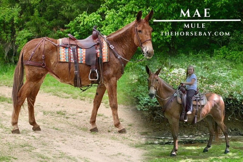 Mae is a remarkable Molly mule that is for the whole family! If you are searching for a mule that is in your pocket and loves attention! Mae trail rides the absolute best! Mae is a mule you can trust. She picks up all her hooves with ease. This amazing mule walks slowly, and she’s very sure-footed. This is a mule you can always go to. She’s been through parades and been on many overnight camping trips. She’s rock solid! Mae handles guns, chainsaws, leaf blowers, lawn mowers, ATVs, and traffic without an issue! Mae has been exposed to all aspects of livestock and isn’t bothered by them or dogs! Mae leads loads and ties with ease. She’s truly an all-around family mule that’s looking for her next family to love! Her video speaks for itself!