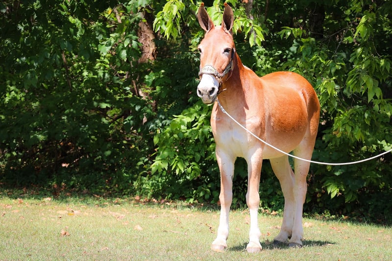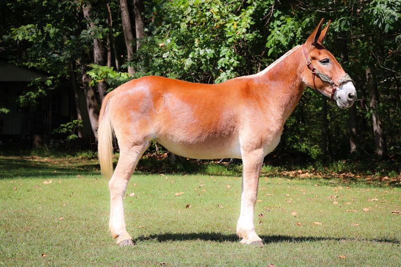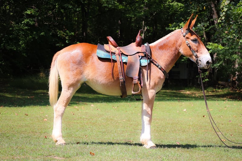 ONLINE AUCTION Place your bids at www.PlatinumEquineAuction.com Starting Bid $3500 Auction ends September 29th, 2024 Need a new saddle? Check out White Rock Saddles on our website or Facebook! This is June, a FAMILY, YOUTH, AND BEGINNER FRIENDLY SORREL MOLLY MULE. This mule is broke to work, ride, and she will hook double or single. She is 15.1 hands tall and 11 years old. She has been ridden by children to school and has been driven on the main roads in a top buggy, cart, and wagon. She is traffic safe and not spooky of fast traffic, tractors, four wheelers, or side by sides. She is quiet and very easy to catch. She stands to hook, harness, tack, mount, and groom. She stands tied, loads, bathes, and hauls with no fuss at all. This mule has been in the woods and used to skid logs, she has pulled the manure spreader, all hay machinery, and the big hay wagons. She is as honest as you get. She is very easy to ride and will lope off quietly with no hump and no buck. She is easy to stop, she handles both ears, and picks up all four feet. She will cross fast rushing water with confidence and rides out alone bravely. She will also ride in a group and doesn’t care if she is in the lead or bringing up the rear. She is fine with dogs trailing her heels. This mule is safe, gentle, and has lots of experience under saddle and under harness. She is B-R-O-K-E!! Don’t miss out on the hard to find kind of mule. Her new owners will appreciate how docile, civilized, and patient she really is. She is Located in Flemingsburg, KY. Contact HH Horses Erin 304-238-4155 with any questions. ONLINE AUCTION Place your bids at www.PlatinumEquineAuction.com Starting Bid $3500 Auction ends September 29th, 2024 Need a new saddle? Check out White Rock Saddles on our website or Facebook!