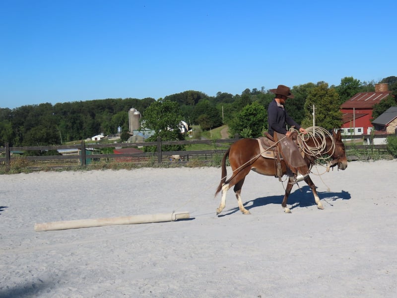 Betty Boop also is a willing mule,if you like doing obstacles, whether it's a scary tarp or teeter totter it doesn't faze her,she is good with carrying flags and tarps for you , and also she will stand while you throw your rope and drag your catch without a problem...