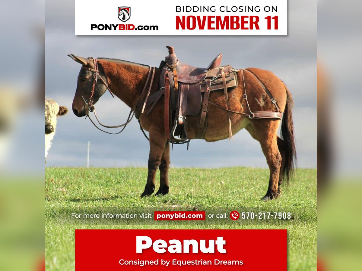 𝓽𝓱𝓮 𝐑𝐈𝐃𝐄𝐑'𝐒 𝓒𝓱𝓸𝓲𝓬𝓮 🐴 𝐏𝐎𝐍𝐘 𝐄𝐃𝐈𝐓𝐈𝐎𝐍 🐴 Happening now thru TUESDAY | NOVEMBER 11th - Available EXCLUSIVELY on Ponybid's website! For more details and to register visit: www.Ponybid.com CONSIGNOR CONTACT: Equestrian Dreams 570-217-7908 LOCATION: Rebersburg, PA BREED: Mule REGISTERED: No COLOR: Red dun HEIGHT: 13.2 AGE: 8 GENDER: Molly Mule 🌟🌟 Peanut 🌟🌟 Wow! What a pretty mule! Peanut is not your typical mule, this girl loves attention and will be waiting for you in the morning, she will let you rub her all over and is not touchy at all around her ears, she loves to be groomed and rubbed on , Peanut is well broke broke to ride and has a Smooth walk-trot-canter that is very easy to sit on , absolutely no buck or rear with Peanut and she loves to trail ride and has been hauled to state parks for trail rides and also been to fun shows , she loads and hauls great! She has been ridden around the farm and is not spooky to farm equipment or loud traffic Over the past year, Peanut has been ridden by both adults and children. She has experience in Ranch, Halter, and Contest classes, and with more finishing, she has the potential to be a high-end performance or show mule. She rides out alone or in a group, has been harnessed, and is broke to a pack saddle. Peanut is eager to please and a quick learner. Peanut sells 100% sound and healthy and requires no maintenance, she can be barefoot or have shoes she stands well for the farrier or vet She is up-to-date on farrier and dewormer and has a current coggins and health certificate If You have any questions please feel free to call Sam 814-810-7918 We are happy to assist arranging transportation anywhere in the US