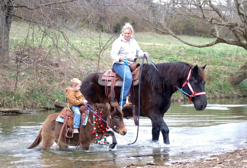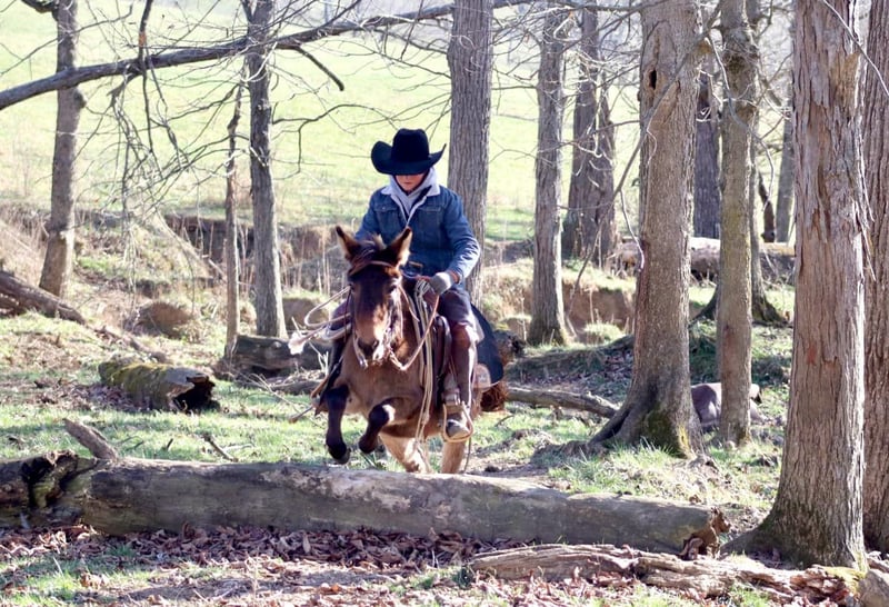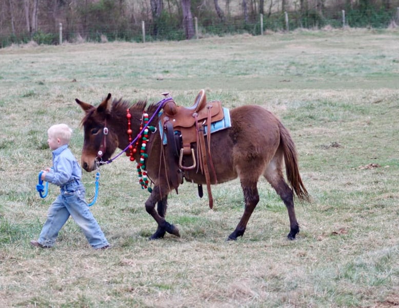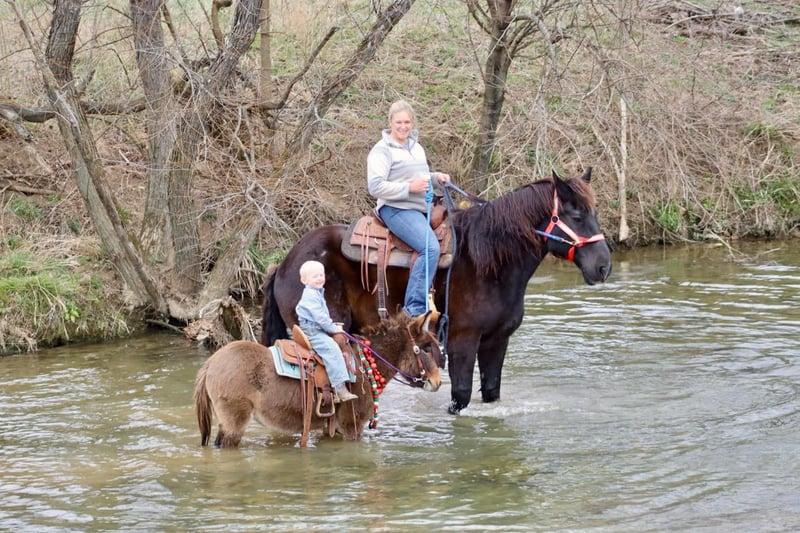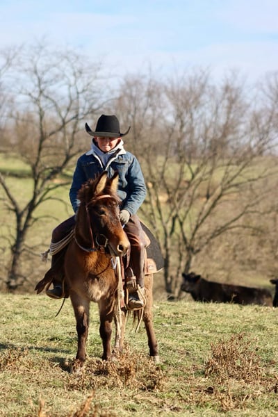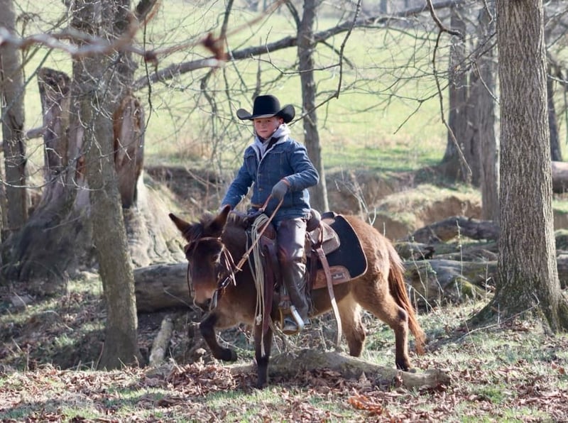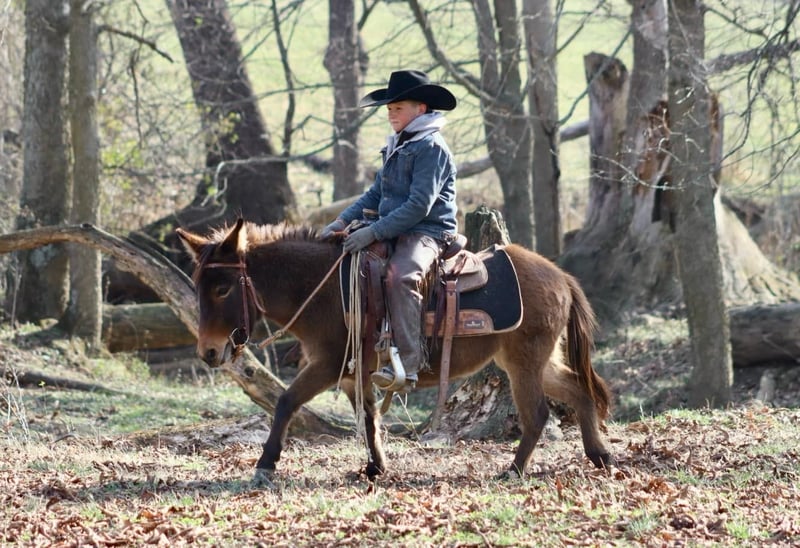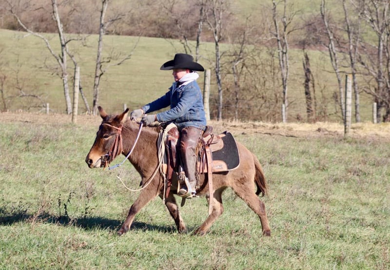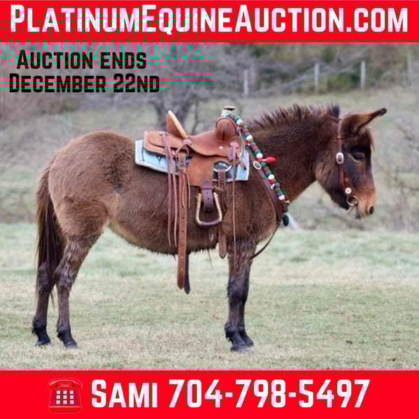 ONLINE AUCTION Place your bids at www.PlatinumEquineAuction.com Starting Bid $3500 Auction ends December 22nd, 2024 Need a new saddle? Check out White Rock Saddles on our website or Facebook! Josie is a 7year old, 40”, bay dun Molly mule. She is an extremely safe, quiet, and gentle pony mule. She is suitable for different ages and levels of kids and your kid can grow and improve either her without outgrowing her abilities quickly. Our toddlers do leadline with her and are riding her independently in a controlled environment. She listens well to their cues and is forgiving of mistakes. Bigger and more experienced kids can have A LOT of fun with her! She will walk, trot, and canter. Josie will back nicely and even can be ridden one handed. Josie rides out I independently or with a group on trail rides. If your kiddo isn’t quite ready to trail ride by themselves, you can pony her with a big horse down the trails. She has been ridden out to check cows and doesn’t get scared of them. Kids have even used her at the stockyards to push cattle down the alley ways. you can throw a rope off of her as well. If you can do it with a big mule, you can do it with Josie too! On the ground, she has excellent ground manners. She is gentle for the kids to lead by themselves. She will stand for hours to be brushed and messed with. You can pickup all 4 feet with ease. She loads and unloads and is careful for the littles to learn to do it with her. The mold was broken with Josie, they very rarely come like her! She travels well and we have had zero issues with her. For more information call or text Sammi Waugh 704-798-5497 Located in Brooksville, KY. ONLINE AUCTION Place your bids at www.PlatinumEquineAuction.com Starting Bid $3500 Auction ends December 22nd, 2024 Need a new saddle? Check out White Rock Saddles on our website or Facebook!