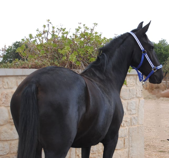 Sibilla est née le 17 avril 2022 dans les vastes pâturages de notre Murgia, au cœur du territoire des Pouilles, qui depuis des siècles accueille l’élevage de chevaux ayant servi de montures à de grands empereurs comme Frédéric II. C’est également dans cette région qu’est officiellement élevé, depuis un siècle, le Cheval Murgese. Notre élevage est un établissement historique, composé d’un parc de juments dont nous connaissons les mères, grands-mères, arrière-grands-mères, et ainsi de suite dans leur ascendance. Aujourd’hui, comme il y a cent ans, nos juments murges naissent et passent leur vie en liberté dans les pâturages et les forêts de la Murgia. Ce qui a évolué et s’est renforcé, c’est surtout notre approche, tant dans la sélection que dans le dressage, qui est devenue de plus en plus professionnelle et passionnée. Comme tous nos chevaux, Sibilla est née dans un troupeau comptant près de 30 sujets, âgés de 0 mois à plus de 20 ans. Elle a passé toute sa vie au sein du troupeau, ce qui l’a aidée à devenir un sujet socialement compétent et très équilibré. Parallèlement, les contacts quotidiens avec l’homme et une approche basée sur la science et le renforcement positif lui ont permis de devenir confiante et sereine face à l’humain. Depuis environ deux mois, elle vit dans un paddock plus restreint avec d’autres juments, et nous travaillons à sa préparation pour qu’elle puisse trouver une famille pour le reste de sa vie. Elle apprend à être conduite à la longe, à être manipulée positivement en box, à rester attachée, au pansage, à la douche, à donner les pieds, à s’approcher du van, et à acquérir toutes les compétences utiles pour la vie quotidienne. La mise en route en trois allures, en préparation du travail à la longe, fait également partie des étapes éducatives que nous lui faisons suivre. Sibilla est une petite jument élégante, avec un pelage noirâtre qui la rend très charmante, digne représentante de sa race. Elle possède une queue et une crinière épaisses qui, avec les soins appropriés, seront une source de fierté pour son futur compagnon. C’est une jument pacifique, respectueuse des espaces personnels, curieuse de l’homme sans jamais être invasive. Comme sa mère, elle apprend très rapidement. Elle est compacte, avec des allures élégantes et sûres, ce qui en fait une excellente compagne pour les promenades, mais aussi pour le travail en carrière ou même pour le travail en selle. Sibilla rappelle beaucoup Nerone, l’un des étalons emblématiques de la race Murgese, par sa taille modérée (environ 150 cm) et son élégance. Comme pour tous nos chevaux, nous recherchons une personne pour la vie, quelqu’un qui voit le cheval comme un être vivant doté de sa propre personnalité, et qui souhaite construire avec lui une relation solide et durable. Une personne capable de comprendre ses besoins fondamentaux : foin disponible 24h/24, et la possibilité de vivre en paddock en compagnie. Nous restons toujours disponibles et ouverts à : - vous envoyer d’autres vidéos - répondre à toutes vos questions et vous fournir toutes les informations nécessaires - organiser une visite vétérinaire adaptée à vos besoins - vous accueillir ici en élevage pour rencontrer Sibilla en personne - organiser le transport et la documentation correspondante. Vous pouvez visiter notre site internet : https://masseriacapoiazzo.it/ et nos réseaux sociaux : Instagram : https://urly.it/3ajhc Facebook : https://urly.it/3ajhd N’hésitez pas à nous contacter pour toute information, ici sur ehorses ou par message WhatsApp au +39 346 523 2016. Paola et Giovanni