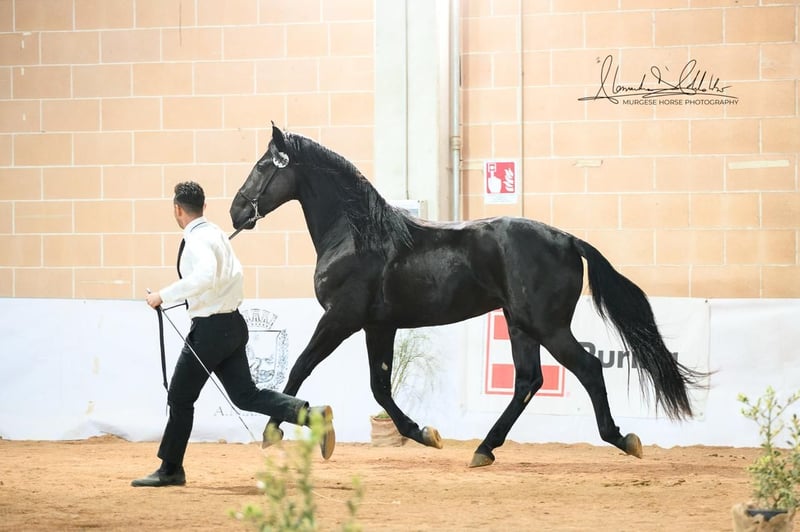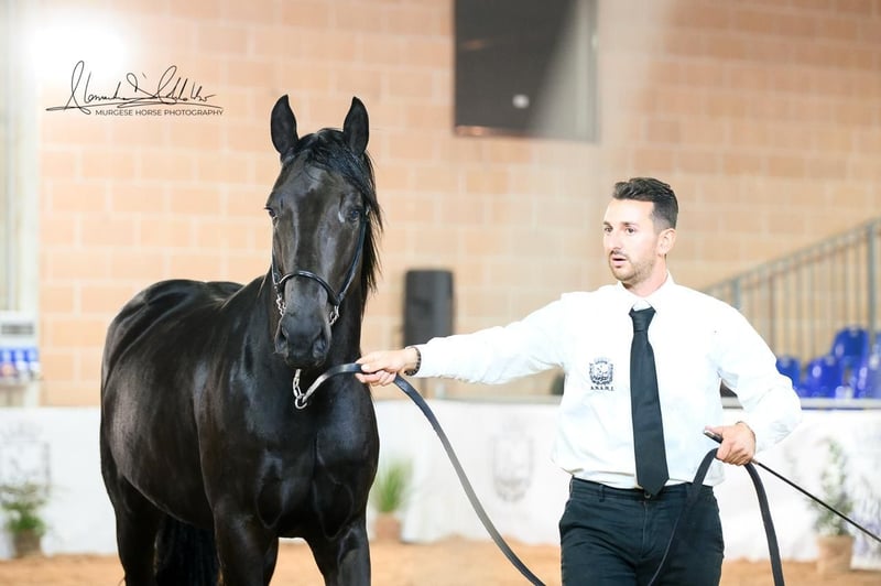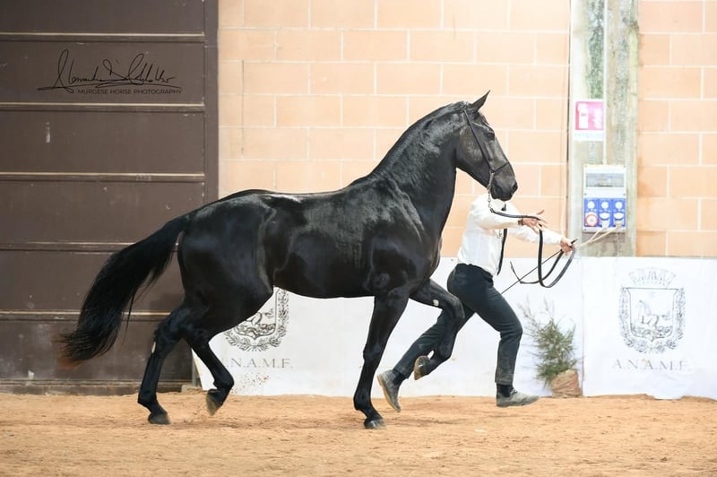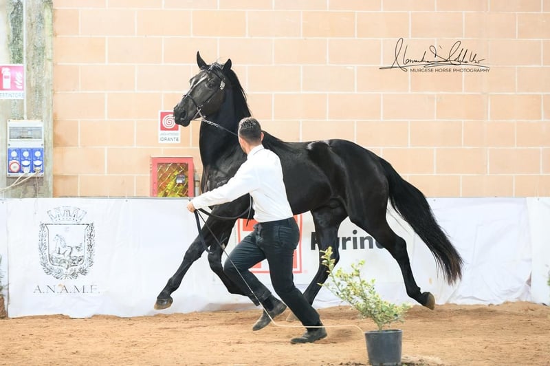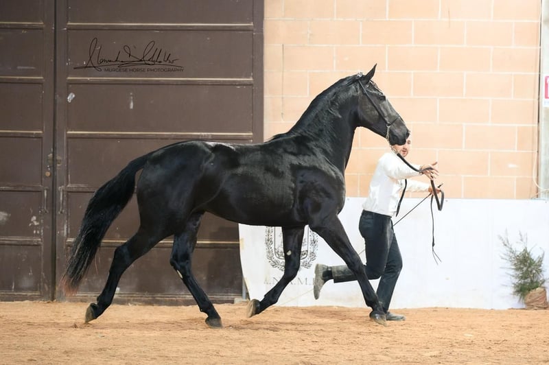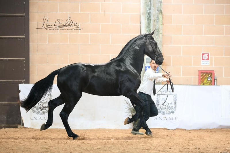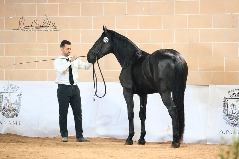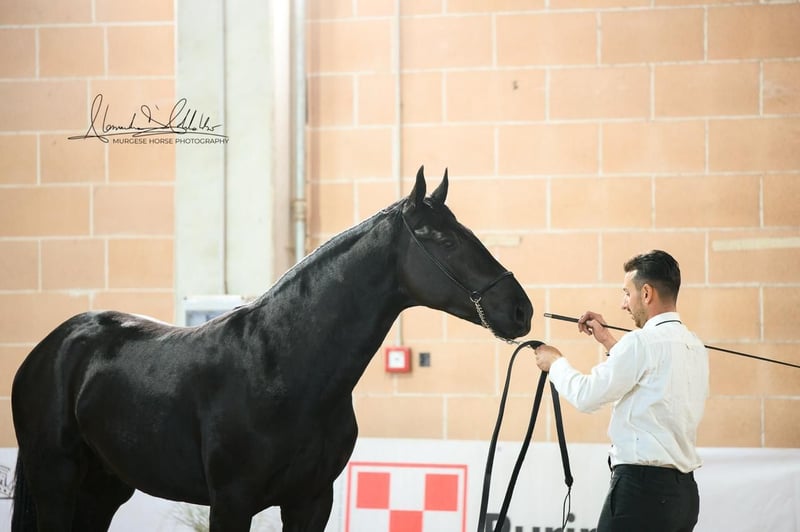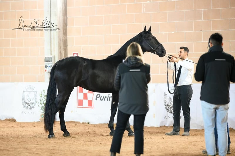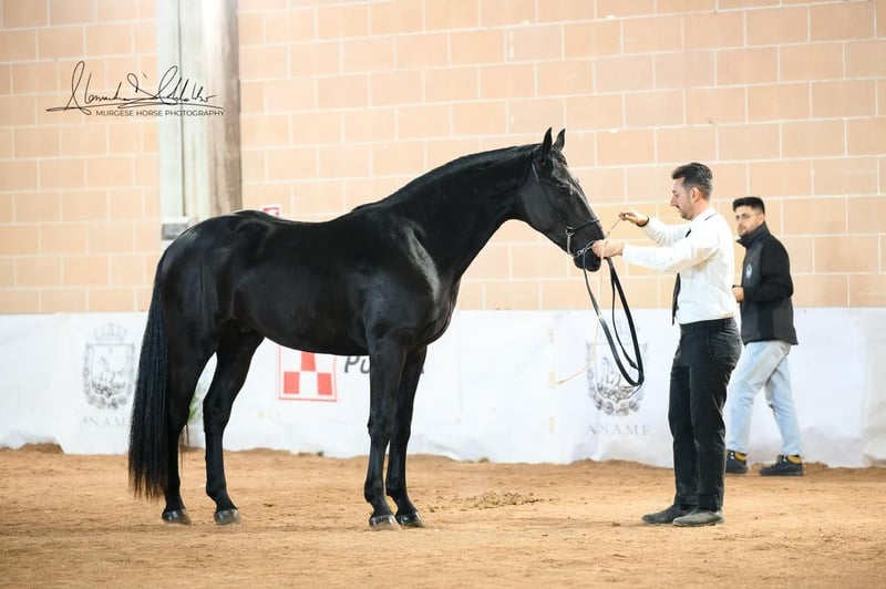 Truman is a 2.5-year-old Murgese stallion with an current height of 15.7 hh, exhibiting a very harmonious and age-appropriate development. He impresses not only with his presence but especially with his balanced and people-oriented temperament. Even in challenging situations, Truman proves to be remarkably calm and confident: during the licensing event, he remained relaxed and composed despite numerous people and loud noises. He is a lovable, attentive young stallion who is very eager to follow his handler and work as a team. As is typical for a young horse, Truman naturally displays curiosity and a joy for learning. He already masters the basics of young horse handling. He is halter-trained, familiar with lunging, and always behaves well and attentively. Truman is ideally suited for individuals seeking an honest, resilient young horse and who enjoy gently and individually furthering his training. A Murgese with great potential and a big heart. Truman is still with his breeder in Italy and welcomes visits there as well. If you would like to know more about Truman, we look forward to your message. X-rays are available and can be viewed upon serious interest. We will also organize everything else for you – veterinary pre-purchase examination, contract processing, transportation to your home stable, and more. Cavallo Murgese.de – on behalf of and in cooperation with the Italian Murgese Association A.N.A.M.F.