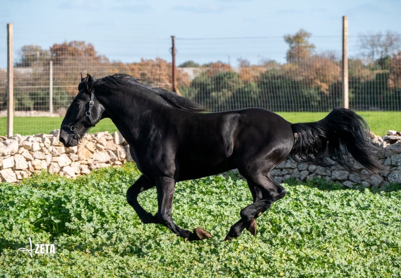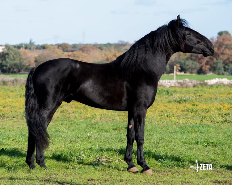 Tamigi delle Lame The price includes the cost of castration performed locally in Italy. Tamigi has been lovingly raised and is being prepared for his future with patience, calmness, and expertise. He has a solid foundation in basic young horse training, remains very relaxed, and handles stressful situations with ease. He is currently approximately 16.1 hh, with an estimated final height of around 16.2 hh. Tamigi is a typical representative of his baroque breed, inheriting many qualities from his sire. His temperament is characteristic of a young horse: curious, open-minded, and sometimes a bit questioning. If you would like to learn more about Tamigi, we look forward to your message. X-ray images are available and can be viewed upon serious interest. We will also handle all further arrangements for you – clinical pre-purchase examination, processing of the sales contract, transportation to your home stable, and more. Cavallo Murgese.de – on behalf of and in cooperation with the Italian Murgese Association A.N.A.M.F.