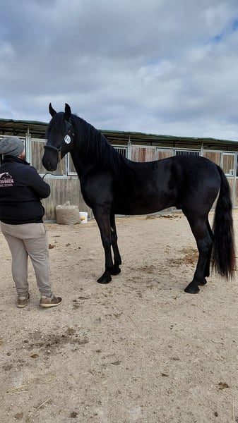 Verkaufe prächtigen Murgese-Hengst, geboren im Jahr 2023. Er ist schwarzbraun (morello) und misst etwa 1,59 m im Widerrist. Herkunft aus einem hochwertigen Zuchtbetrieb, stellt dieses junge Pferd eine hervorragende Gelegenheit für alle dar, die ein kräftiges und vielseitiges Tier suchen. Perfekt für Reitaktivitäten oder Zuchtzwecke, mit den typischen Eigenschaften der Murgese-Rasse. Für weitere Informationen und Details zögern Sie bitte nicht, mich zu kontaktieren.