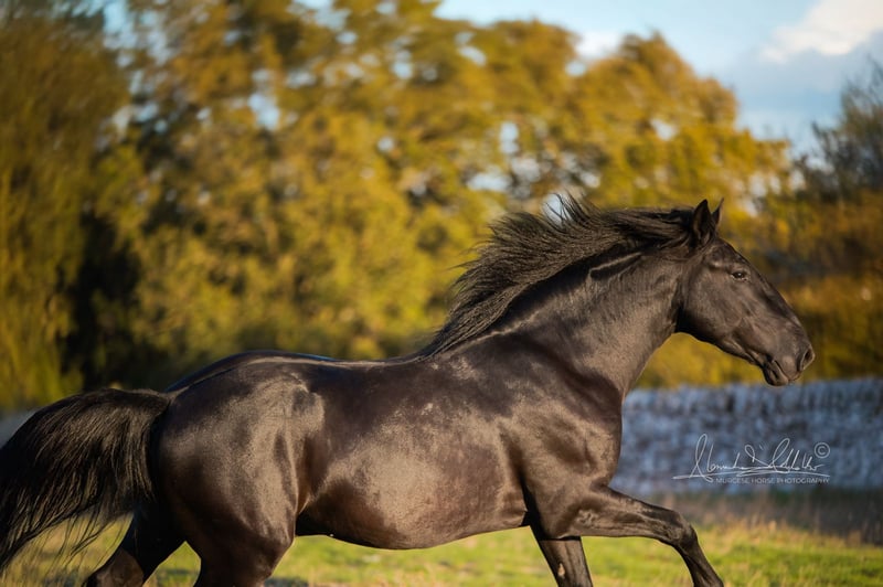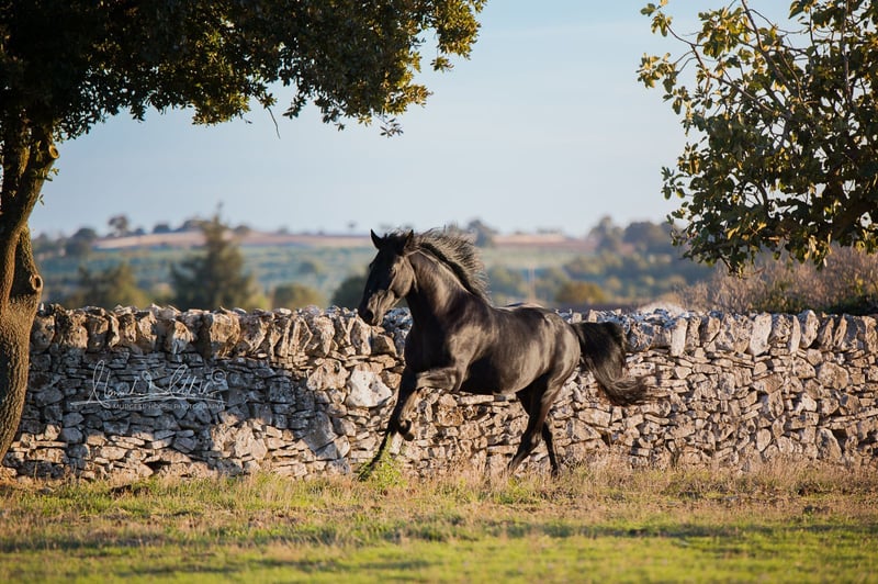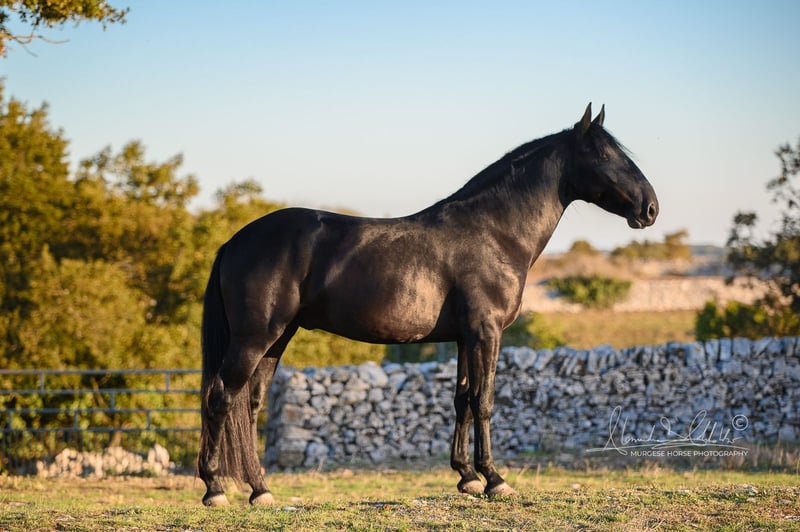 Castratie is al inbegrepen in de aankoopprijs! Salvador P.M. is een van die paarden die we bijna vanaf de geboorte hebben mogen begeleiden. Hij is opgegroeid op de grote weiden van de fokker en kwam begin dit jaar in de stallen om hem voor te bereiden op zijn verdere leven. En voor deze fokkerij gebeurt dat op een rustige manier en in het tempo van het paard. De basis van de jonge paarden is gelegd en de verdere training wordt leeftijdsgericht voortgezet. Salvador doet netjes mee en toont daarbij nieuwsgierigheid en openheid. Salvador is zeer typisch voor zijn ras, met een vleugje elegantie en een mooi, niet te overdreven hoofdje. Hij is heel lief en vriendelijk, maar brengt toch veel esprit mee, wat hem tot een ideale toekomstige metgezel maakt voor een betrokken familie of een enthousiaste recreatieruiter. Ook in de barokke dressuur kunnen we hem goed voorstellen – hij beschikt over goede bewegingen in het algemeen. Hij is momenteel 154 cm hoog – zijn uiteindelijke maat wordt geschat op ongeveer 160 cm. Salvador is nog hengst, maar kan op verzoek gecastreerd worden (al inbegrepen in de prijs). We kijken uit naar vragen – meer informatie en video’s zijn uiteraard mogelijk. Wil je Salvador persoonlijk ontmoeten? Neem dan mee op reis naar zijn thuisland Apulië. Hij brengt ook röntgenfoto’s mee; bij serieuze interesse zijn deze in te zien. Daarnaast regelen wij alles voor jou – klinisch aankooponderzoek, afhandeling van het koopcontract, transport naar jouw thuisstal, enzovoort. - namens de Italiaanse Murgesenvereniging A.N.A.M.F.