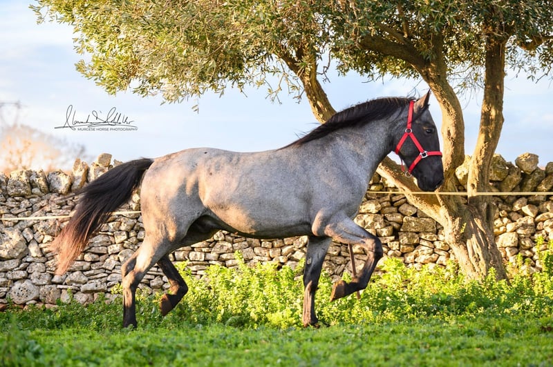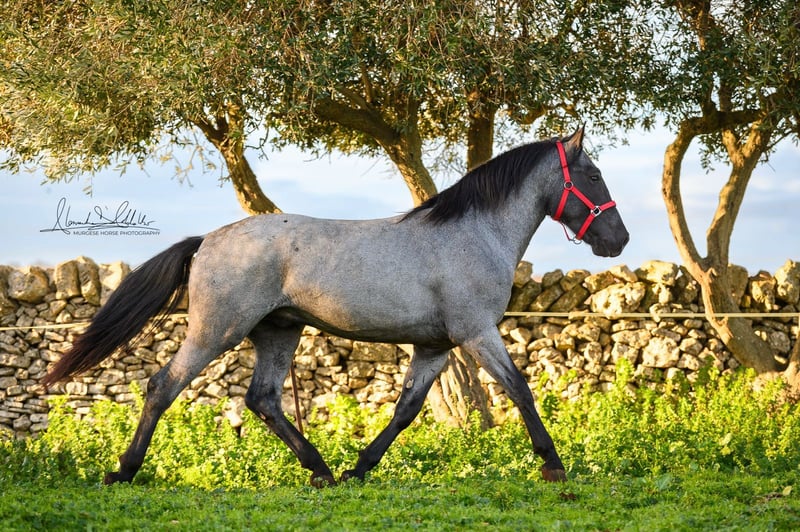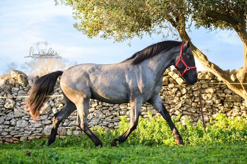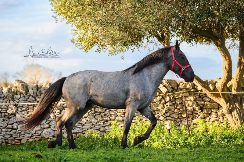 Tiberio es un ejemplar típico de Murgese, con una altura actual de aproximadamente 1,58 m. El precio de la castración ya está incluido en el precio de compra. Criado en una familia muy amorosa y en una manada, como es propio de un Murgese. La cría, a cargo de Michele Recchia, se ha convertido en un secreto bien guardado para caballos Murgese de alta calidad, que se acostumbran con calma a la mano del jinete, aprendiendo la base del trabajo con caballos jóvenes sin prisas ni estrés, y cumplen con los criterios típicos de la raza. Podemos imaginar a Tiberio como un caballo de ocio y para la familia. Sin embargo, también tiene potencial para una futura formación avanzada, siendo apto para disciplinas como la equitación clásica o la Working Equitation. Si deseas saber más sobre Tiberio, estaremos encantados de recibir tu mensaje. Disponemos de radiografías y, en caso de interés serio, pueden ser vistas sin problema. También nos encargamos de todo lo demás para ti: revisión clínica precompra, gestión del contrato de compraventa, transporte a tu establo de origen, etc. La intermediación del caballo se realiza únicamente de forma voluntaria y gratuita en nombre del propietario (miembro de la Asociación de Murgese A.N.A.M.F.). El intermediario actúa únicamente como un mediador neutral entre el propietario y el posible comprador.