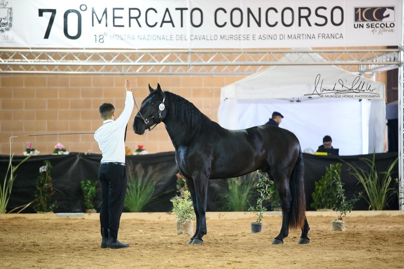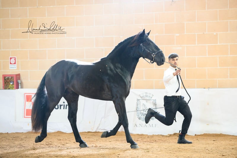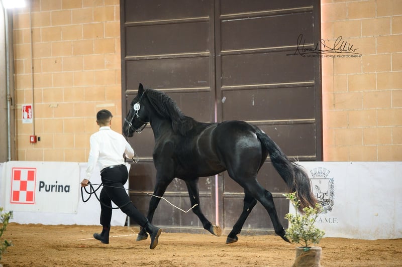 Toto incarne la lignée originelle de cette impressionnante race et possède tout ce que l'on peut attendre d'un véritable cheval baroque : une construction robuste, une apparence élégante et un regard honnête et clair. Nous estimons sa taille finale à plus de 165 cm – il est donc idéal pour les cavaliers qui apprécient la taille et la présence. Toto a grandi en troupeau, connaît l'ABC des poulains et se montre toujours amical, attentif et proche des humains. La castration est possible sur demande sur place. Des radiographies sont disponibles et, bien sûr, consultables en cas d'intérêt sérieux. Nous planifions également tout le reste pour vous – examen clinique d'achat, gestion du contrat de vente, transport vers votre écurie d'origine, etc. Cavallo Murgese.de – sous l'autorité et en collaboration avec l'association italienne des Murges A.N.A.M.F.