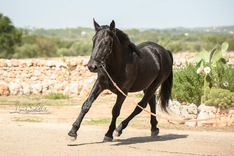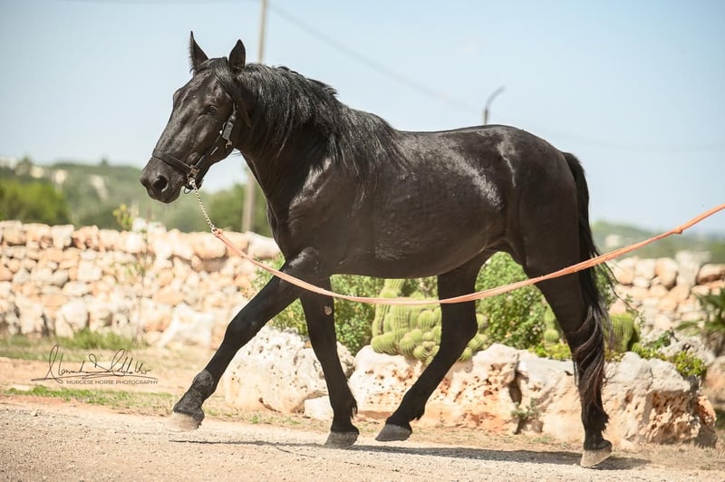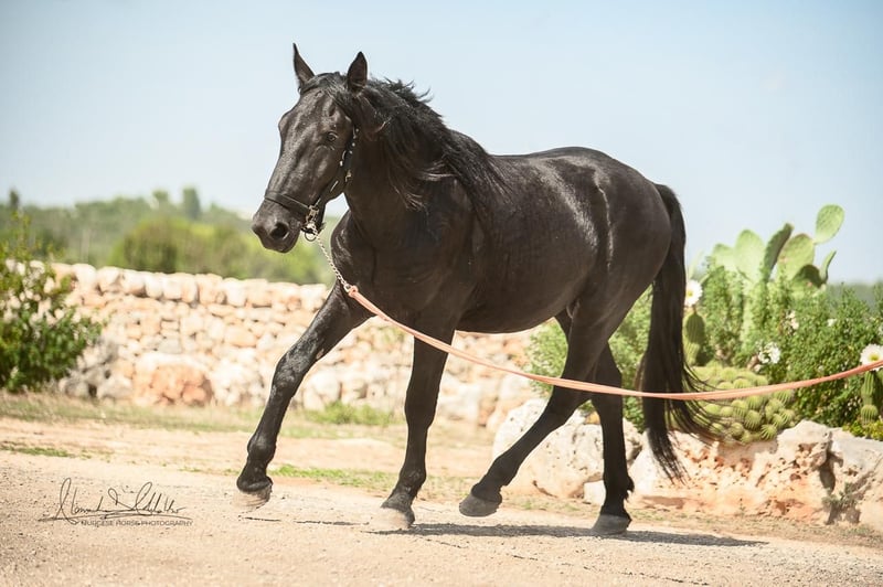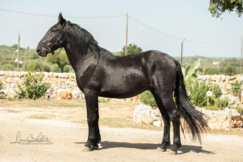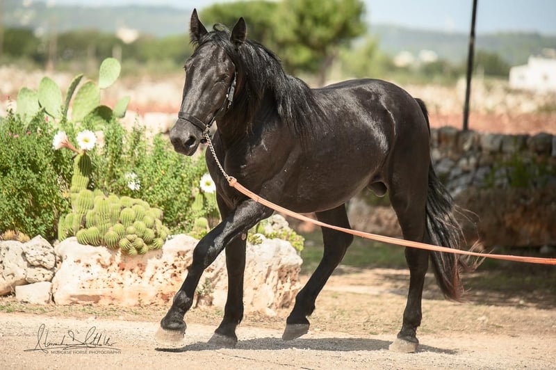 The 2.5-year-old Tristano is still a stallion. He belongs to the baroque Murgese breed and currently has a height of 156 cm, with an expected final height of 164 cm. The costs of castration are already included in the purchase price. Tristano presents himself as friendly and open-minded and has mastered the basics of young horse training. A balanced character and a clear mind make him an ideal partner for leisure, working equitation, or as a future riding or driving horse. The young stallion is still with his breeder in Apulia (Italy) and can be viewed there at any time by appointment. He also comes with X-rays, which can be viewed upon serious interest. We also plan everything else for you – clinical pre-purchase examination, processing of the purchase contract, transport to your home stable, etc. Cavallo Murgese.de – on behalf of and in collaboration with the Italian Murgese Association A.N.A.M.F.