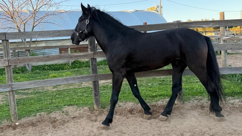 Stunning 4-year-old stallion. Well-balanced temperament, trained but still requiring some re-education. Excellent pedigree on both sire and dam sides, with bloodlines including Goldwin di Vallenza, Nesio, Everest, and Paisiello—names that have shaped the history of the Murgese breed. Imposing horse with a height at the withers of 16.2 hands. Photos are attached, but they do not do justice to the horse's true presence in person.