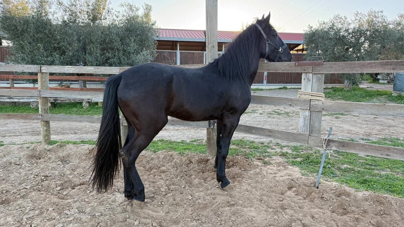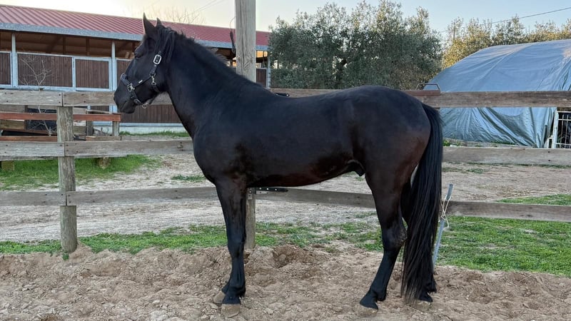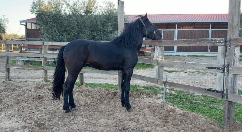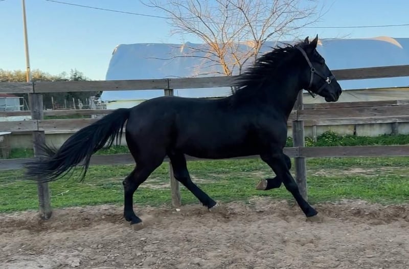 Stunning 4-year-old stallion. Well-balanced temperament, trained but still requiring some re-education. Excellent pedigree on both sire and dam sides, with bloodlines including Goldwin di Vallenza, Nesio, Everest, and Paisiello—names that have shaped the history of the Murgese breed. Imposing horse with a height at the withers of 16.2 hands. Photos are attached, but they do not do justice to the horse's true presence in person.