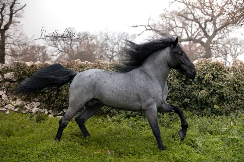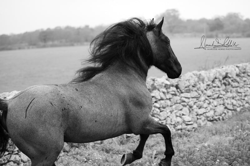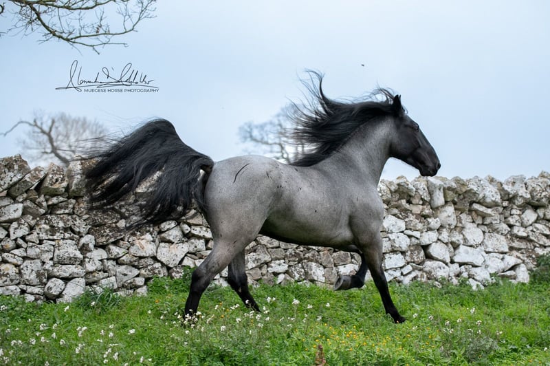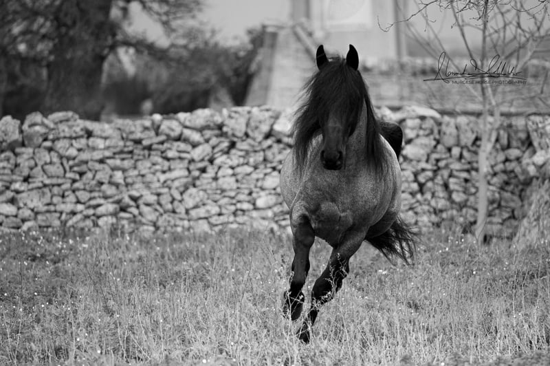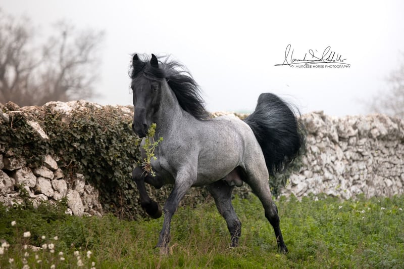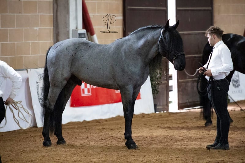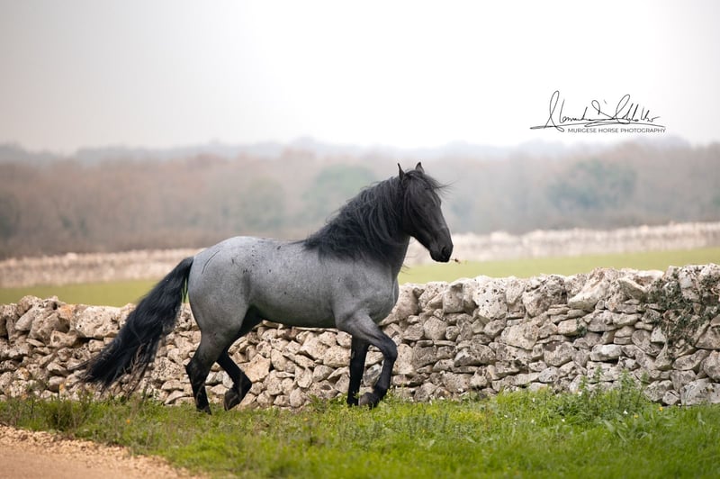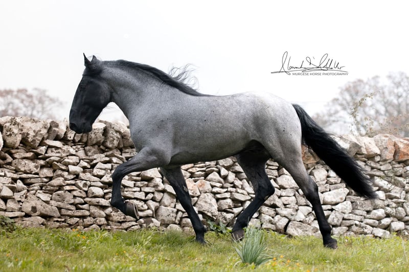 If you are looking for a special horse with a lot of potential and charm, then Pericle might be just the right one for you. Pericle stands out not only for his rare and impressive special color Blue Roan but also for his honest character. He is familiar with the saddle and has been ridden, although his last ride was some time ago. His height is approximately 160 cm. Pericle is currently still a stallion in Italy. He can be castrated upon request (already included in the price). We look forward to inquiries – further information and videos are of course available. Do you want to meet Pericle in person? Then join us on a journey to his homeland in Apulia. X-ray images are of course available. A vet check can be conducted on-site upon request. We also plan everything else for you - handling the purchase contract, transport to your home stable, etc. Cavallo Murgese.de - on behalf of and in collaboration with the Italian Murgese Association A.N.A.M.F.