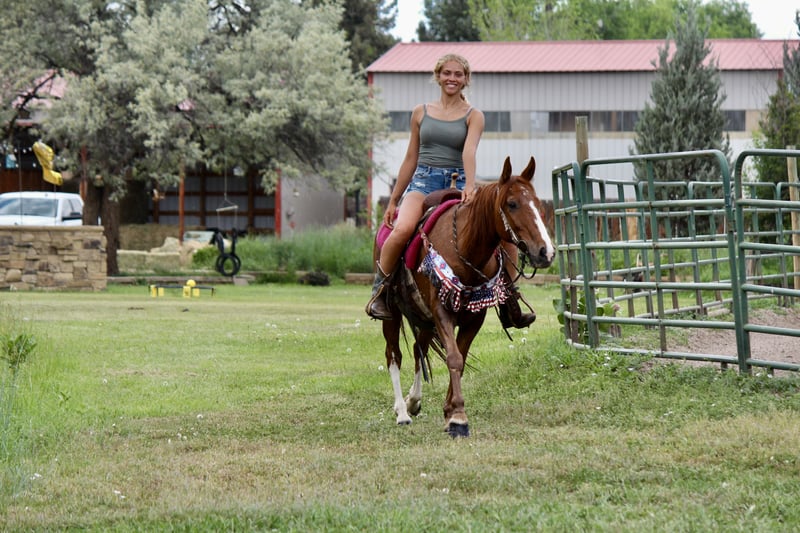 "AVAILABLE ON ONLINE HORSE AUCTION AT www DOT MagicHorseAuction DOT com BIDDING OPEN NOW thru TUESDAY | JULY 22nd - BUY IT NOW AVAILABLE! *Final price will be determined on auction site* CONSIGNOR CONTACT INFO: Dynamite Horses 970-632-3644 LOCATION: Fort Collins, CO ★★ CANDY CANE ★★ 2011 Sorrel Mustang Gelding | Flashy Chrome | Seasoned Trail Horse with Personality Candy Cane is a 2011 sorrel mustang gelding with plenty of chrome and a larger-than-life personality. He’s the kind of horse that turns heads and wins hearts wherever he goes. Energetic, enthusiastic, and full of character, Candy Cane is a true all-around partner who’s always ready for the next adventure. He absolutely loves having a job and is happiest when he’s working. With his great motor and forward-thinking attitude, Candy Cane is the type of horse that can go all day and still be eager for more. He’s been used extensively on the trail and has proven to be reliable in a wide variety of settings. Whether you’re riding alone or in a group, he’s confident, surefooted, and steady. He’s even ridden straight through downtown Fort Collins without batting an eye — completely unfazed by traffic, bikes, strollers, dogs, pedestrians, or crowds. In the arena, Candy Cane has a solid foundation. He knows his leads, stops off voice cues, performs a smooth rollback into the rail, and carries a comfortable, slow jog. He’s also been ridden English and bareback, showing his versatility and easygoing nature. Whether you’re headed into the hills or warming up in the ring, he’s ready to meet the moment. Candy Cane has been exposed to a wide range of obstacles and activities. He’s carried a flag, crossed tarps without hesitation, been hitched to pull a wagon, and even gone swimming. His boldness and curiosity make him a joy to ride in unfamiliar settings, and he handles new experiences with enthusiasm. He’s also incredibly personable on the ground. Candy Cane is easy to catch, enjoys being bathed, and thrives on attention. He’s got a goofy, affectionate personality and thinks every horse is his new best friend. He doesn’t need to be lunged before riding — just saddle up and go. Candy Cane is truly a one-of-a-kind gelding with heart, ability, and a personality that keeps things fun. If you’re looking for a horse that’s trail seasoned, versatile, and full of character, he’s ready to be your next partner. Feel free to reach out with any questions or to schedule a time to come meet this sweet and spirited guy. His video is available to watch — don’t miss the chance to see him in action.