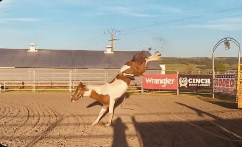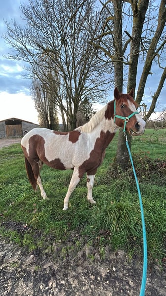 Jason, a 6-year-old gelding (born in 2019), standing approximately 14.9 hh Chestnut pinto Front hoof injury Registered with ONCP, but his sire is a Paint Horse and his dam is a Mustang (USA) Please read the entire listing carefully. Jason is a horse with a very particular temperament; he requires a genuine bond of trust. He was broken in for rodeo work and still retains some of those memories, which he can demonstrate. He needs to be brought back into work. He is still green in his training. Over fences, he jumps small obstacles and can link 4 to 5 jumps at 60 cm. Under saddle, he can do short sessions, shoulder-in, but it’s not yet perfect. On rides, he remains gentle, but can be sensitive in the arena; he has a blockage and may become tense (bucking, tail swishing, kicking out) due to his rodeo background. Despite this, he remains friendly on the ground and lunges very well. I am parting with him because I lack the experience to handle a rodeo-trained horse. He lives outdoors year-round. He is familiar with the mower, tractors, dogs, and the river. He loads very well into a trailer and travels calmly. Up to date on farrier, dentist, osteopath, vaccinations, and deworming. I am looking for a five-star home for him, ideally with one or more pasture mates. A life entirely on pasture would be perfect for him. I am seeking a person or professional with a high level of experience, as he is a challenging horse and not suitable for a beginner. For more information and pricing, please contact me via private message. Available in Saône-et-Loire (71).