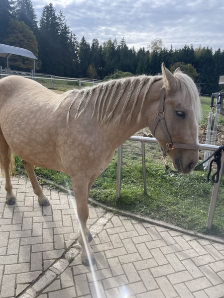 Ich gebe meine 5-Jährige, ca 1,47m große, American Mustang Stute ab. Sie wurde 2025 aus den USA importiert und war dort bereits ca 2 Jahre in Menschenhand. Sie kennt Longieren, Putzen, Schmied, Mähne kämmen und das Reitpad. Gewicht war noch keins auf ihrem Rücken. Sie ist sehr ängstlich und braucht lange Zeit um sich an neue Situationen, Geräusche und Bewegungen zu gewöhnen. Sie braucht eine Person die jeden Tag Zeit für sie aufbringt und viel Geduld mitbringt. Bei Fragen oder Interesse gerne jederzeit melden. Platz vor Preis ❤️