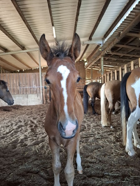Pearl was born on 29.08.2024 with and in the herd here in Germany. She is a Tabiano with a blue eye, something very special. She is a self-confident young lady who likes to do things with people. She is curious and always comes here. Parents both Mustang Sire: Inferno #625 Mother: Princess # 671 Further Asbt parentage detectable If you would like to get to know the little mouse, please get in touch. We are expecting several foals this year 2025, please contact us here if you are interested. MustangxMustang Pearl will be sold in June when she is 9 months old, after that the price for her will increase. We are also happy to bring the little mouse to her new home. Best regards The Schnell family from BW 74635 Kupferzell